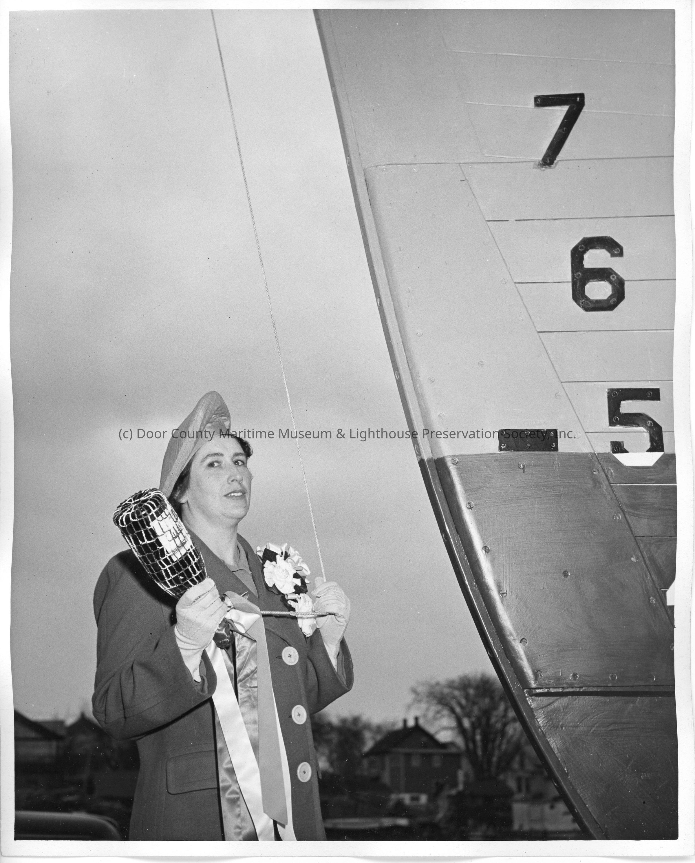 SC-1035 ship sponsor about to christen ship April 12, 1943