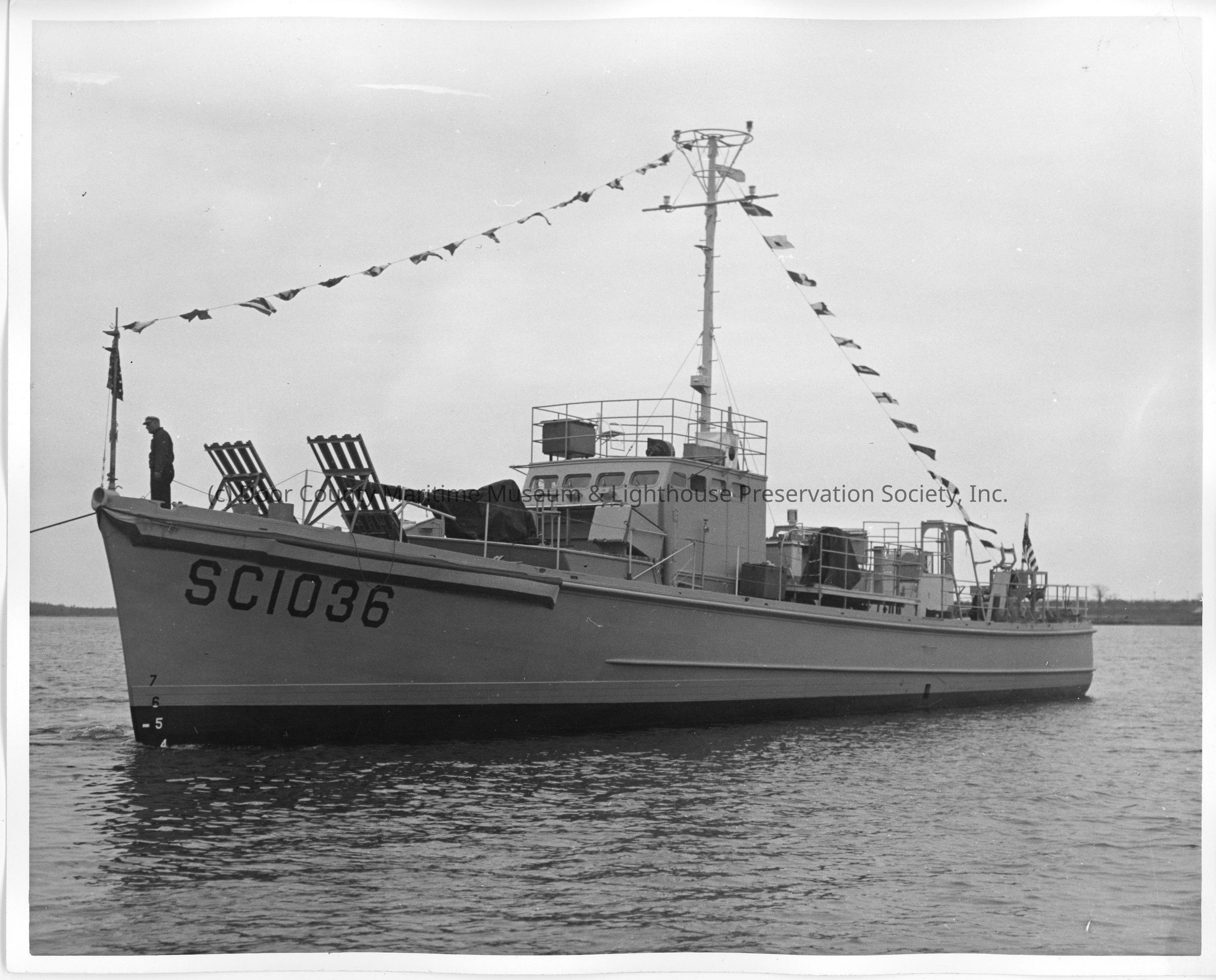 SC-1036 being towed in Bay of Sturgeon Bay May 10, 1943