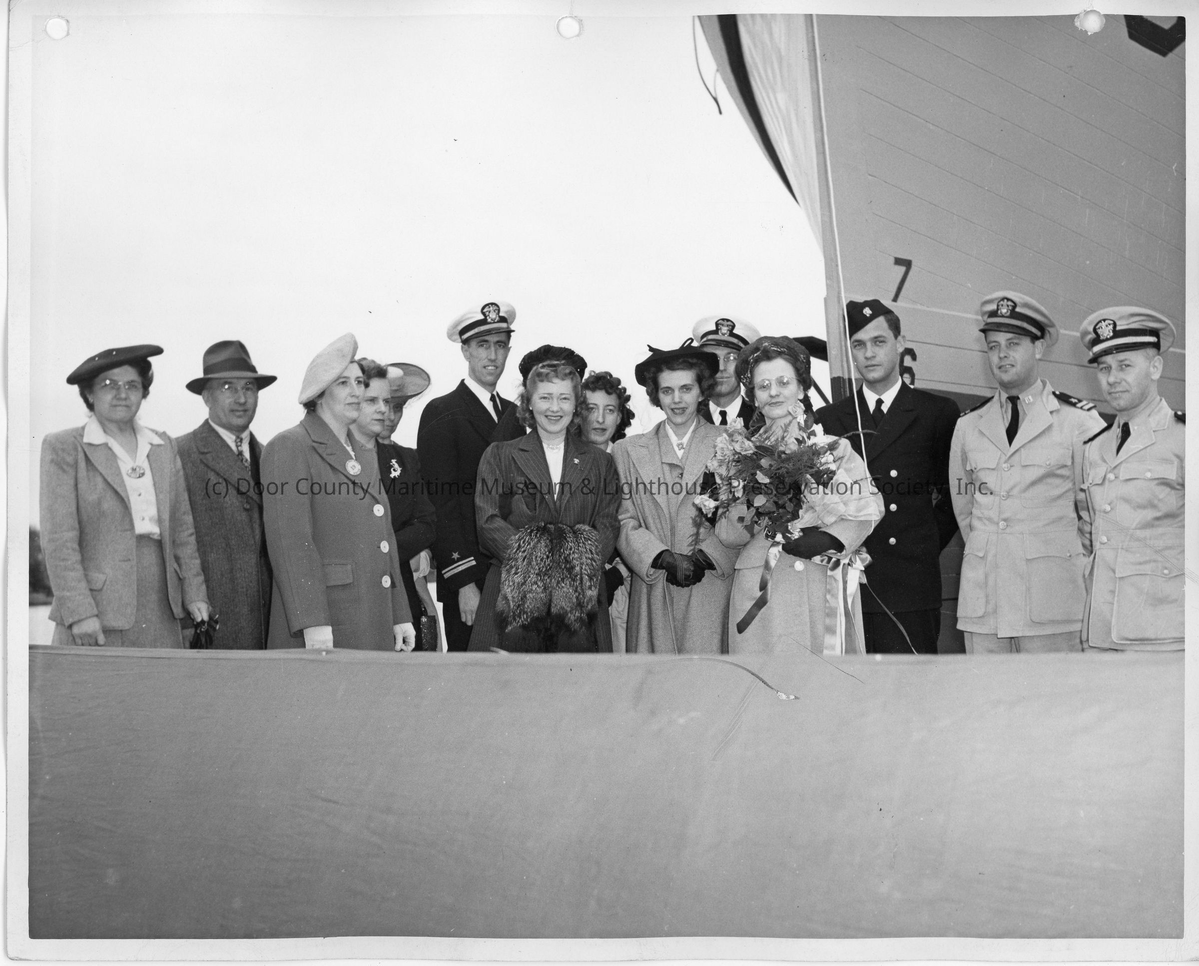 SC-1036 sponsor party in christening box at Peterson Boat Works May 10, 1943