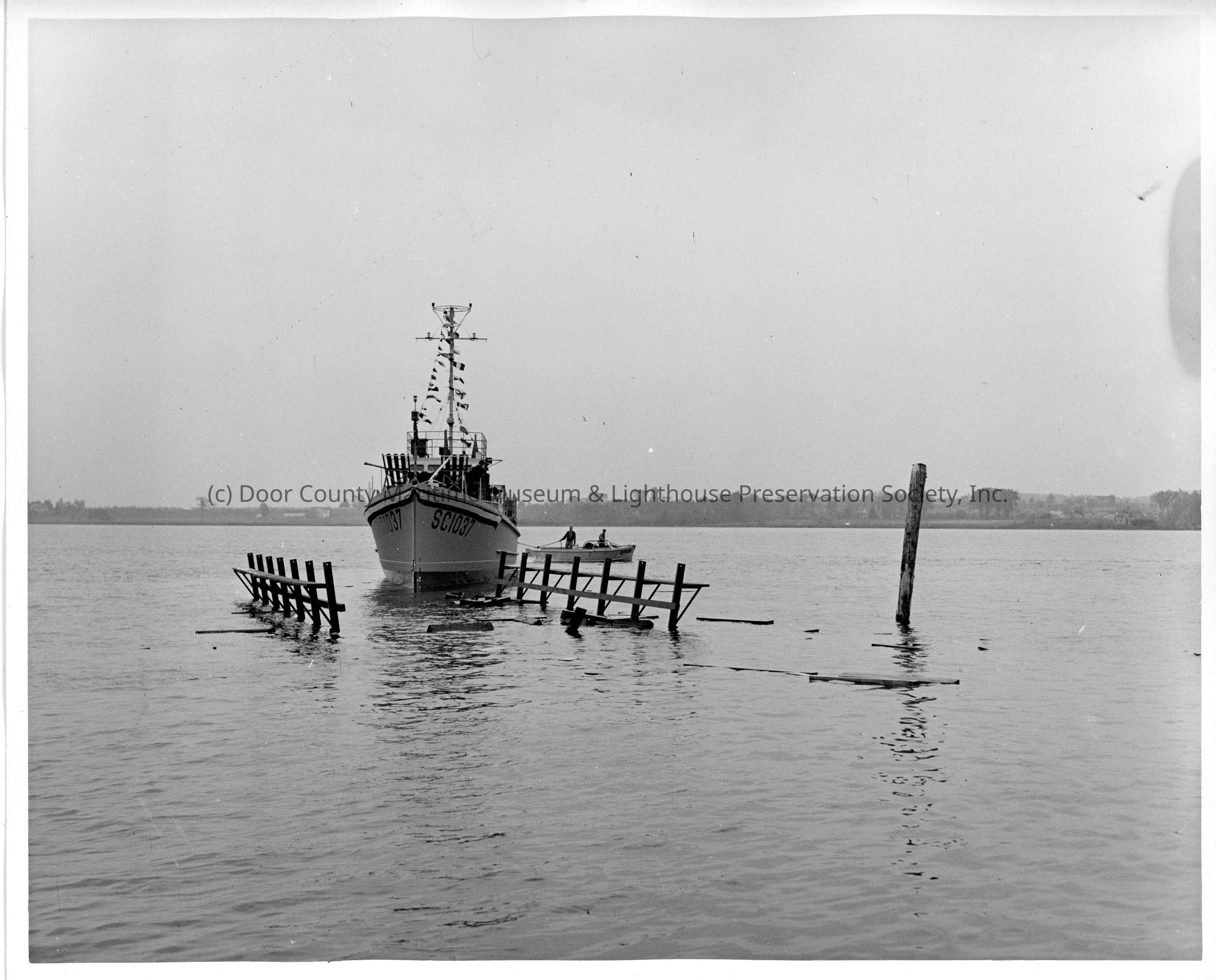 SC-1037 being towed by motor boat post-launch May 29, 1943