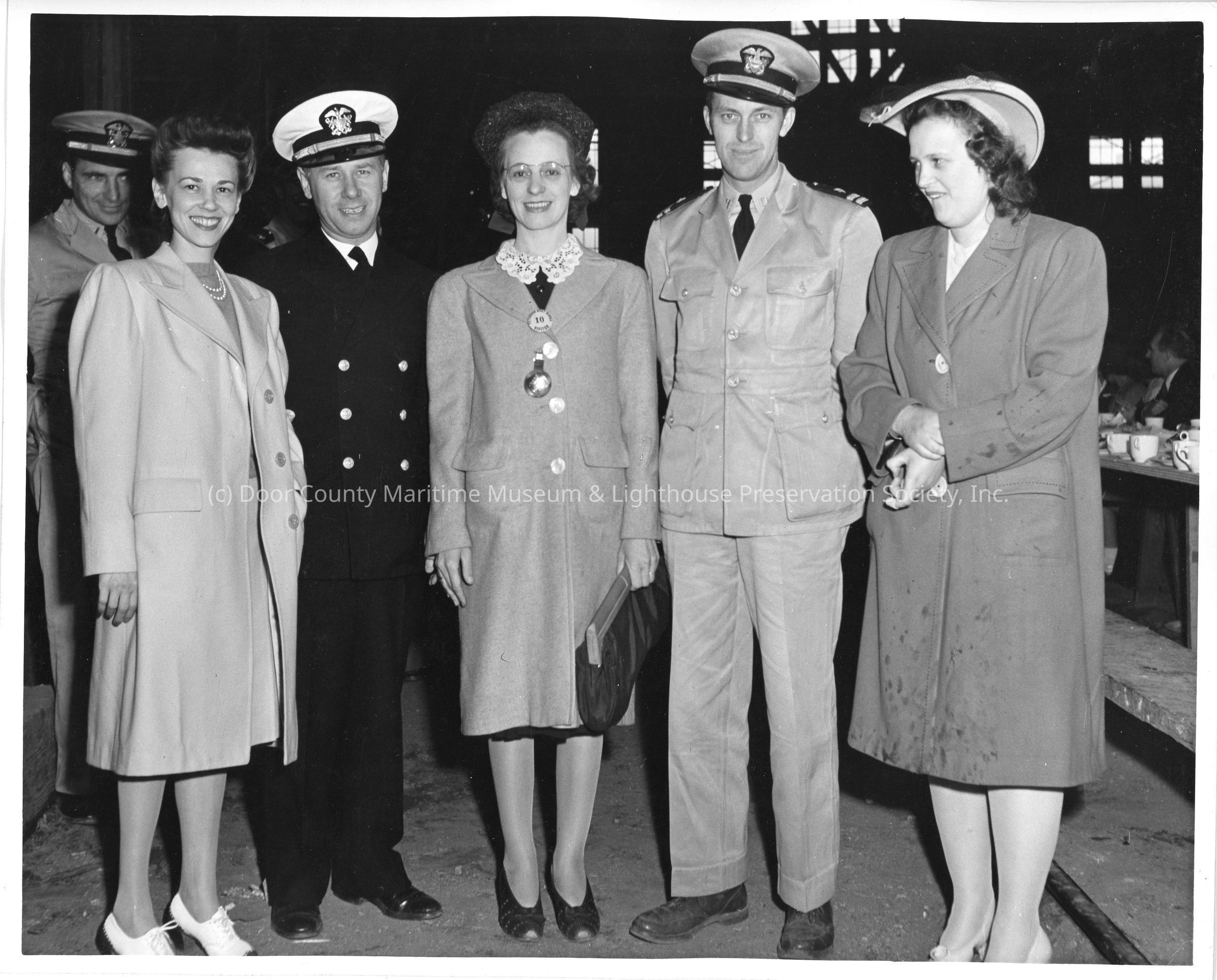 SC-1037 ship sponsor standing with three men and two women post christening May 29, 1943Entry/Object ID