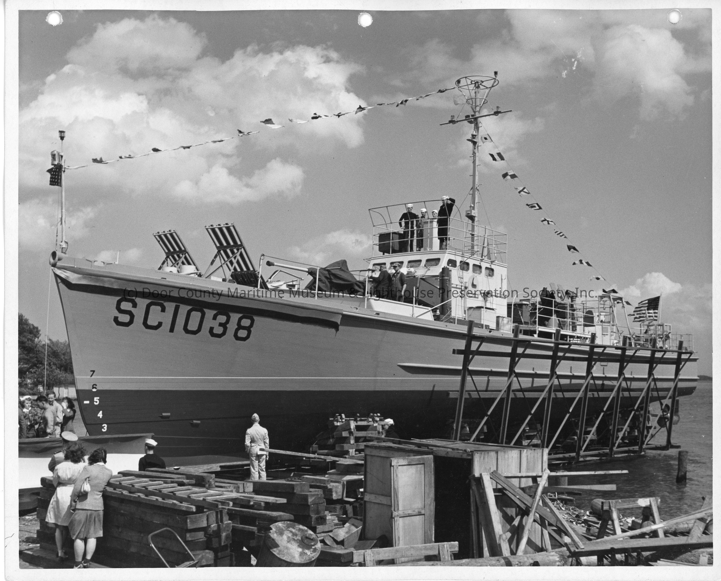 SC-1038 christening at Peterson Boat Works June 12, 1943