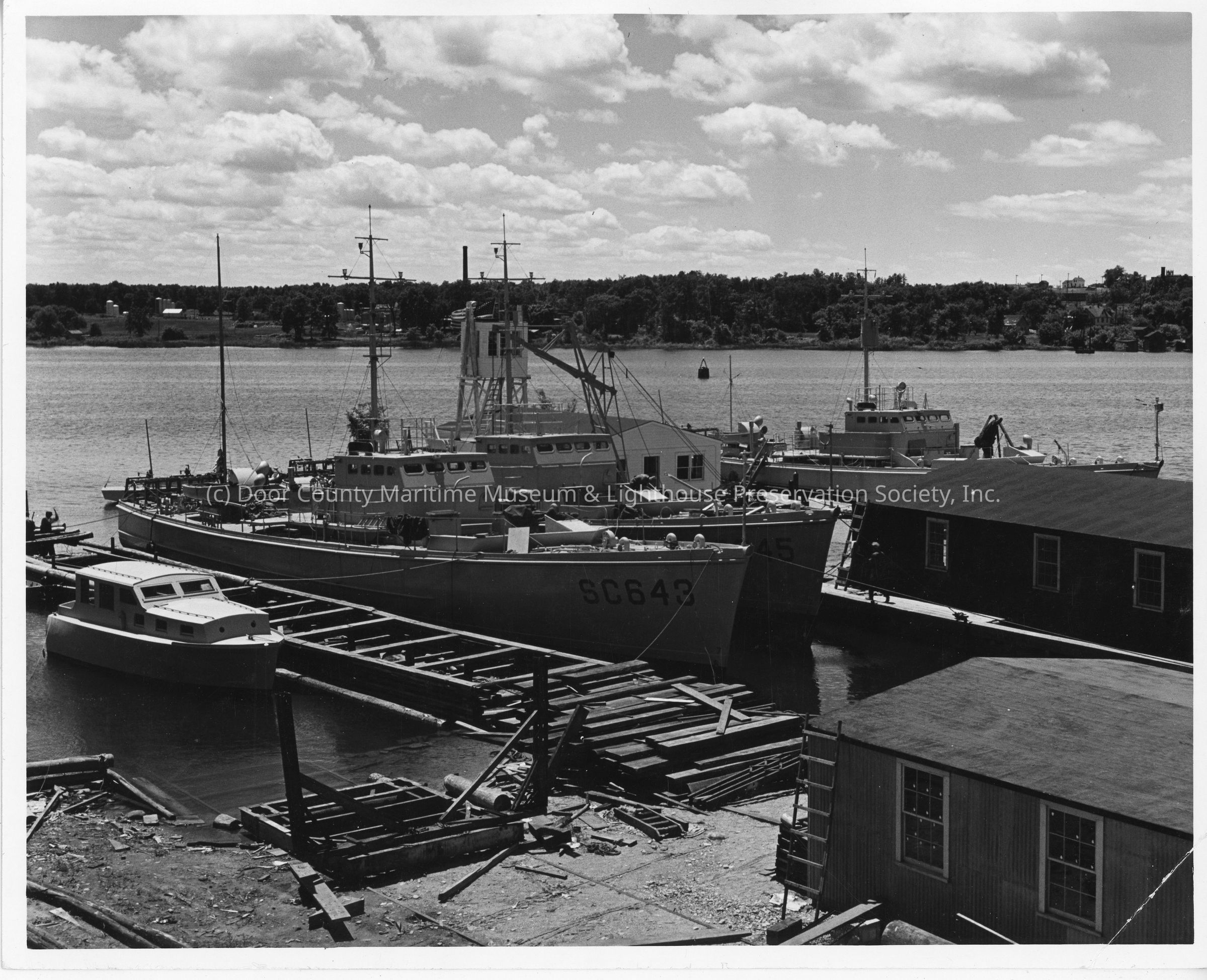 SC-642, SC-643, and SC-645 docked at Peterson Boat Works July 6, 1942