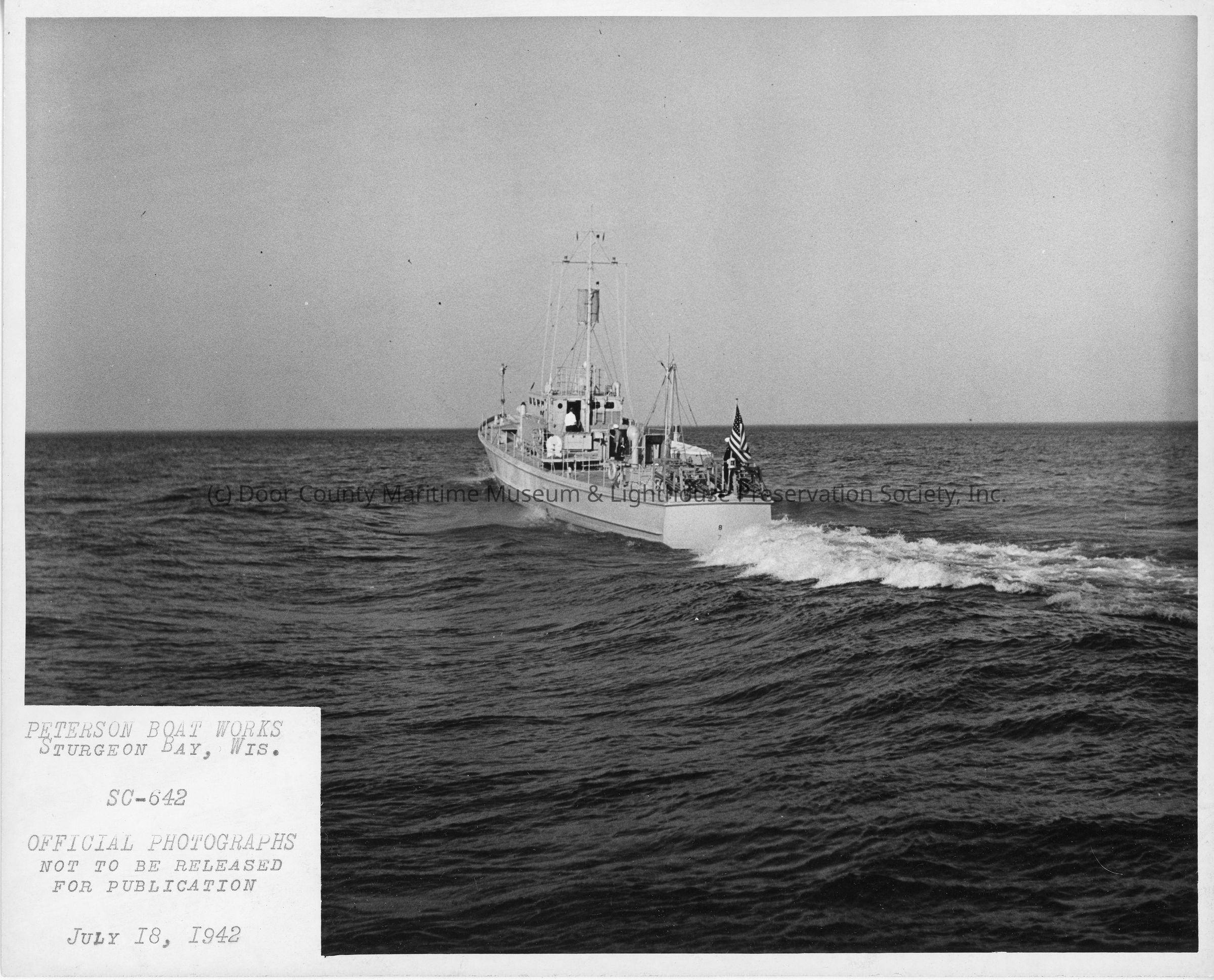 SC-642 underway during sea trial July 18, 1942