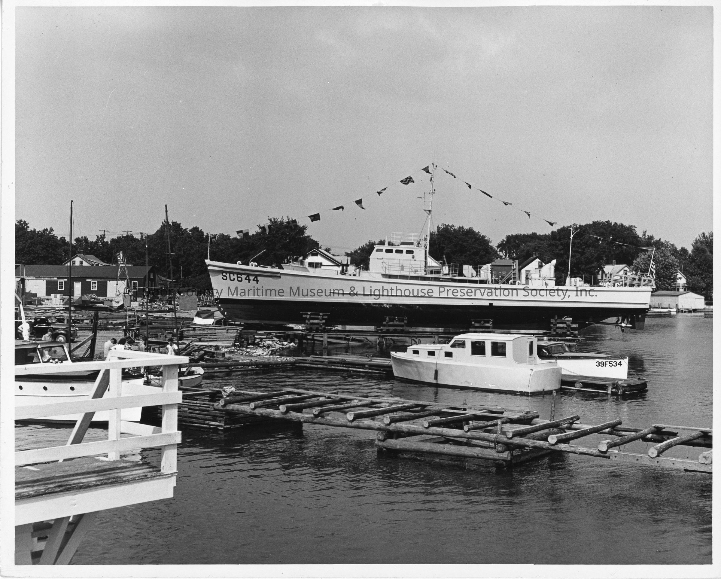 SC-644 on cribbing at Peterson Boat Works July 26, 1942