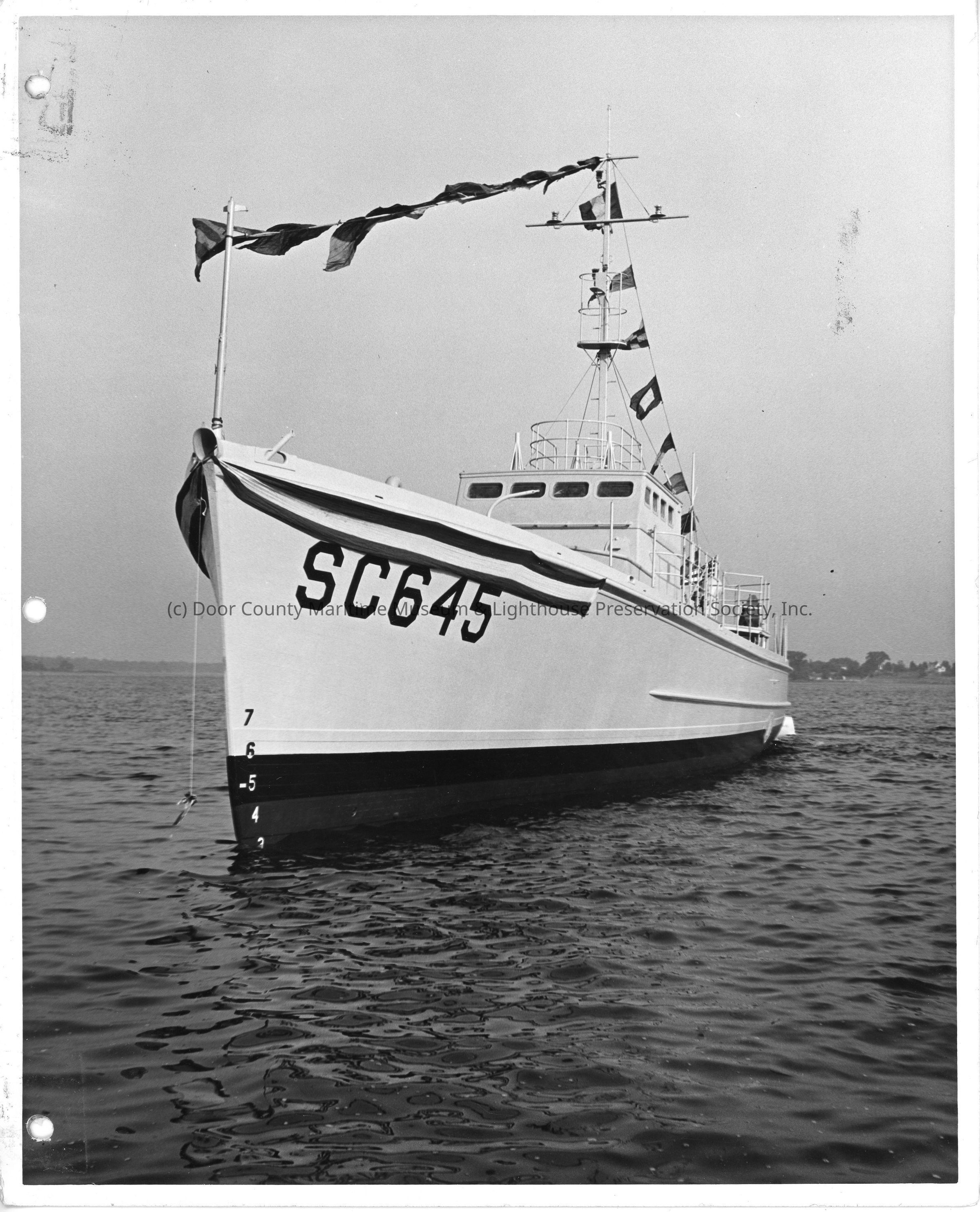 SC-645 in water post-launch at Peterson Boat Works June 27, 1942