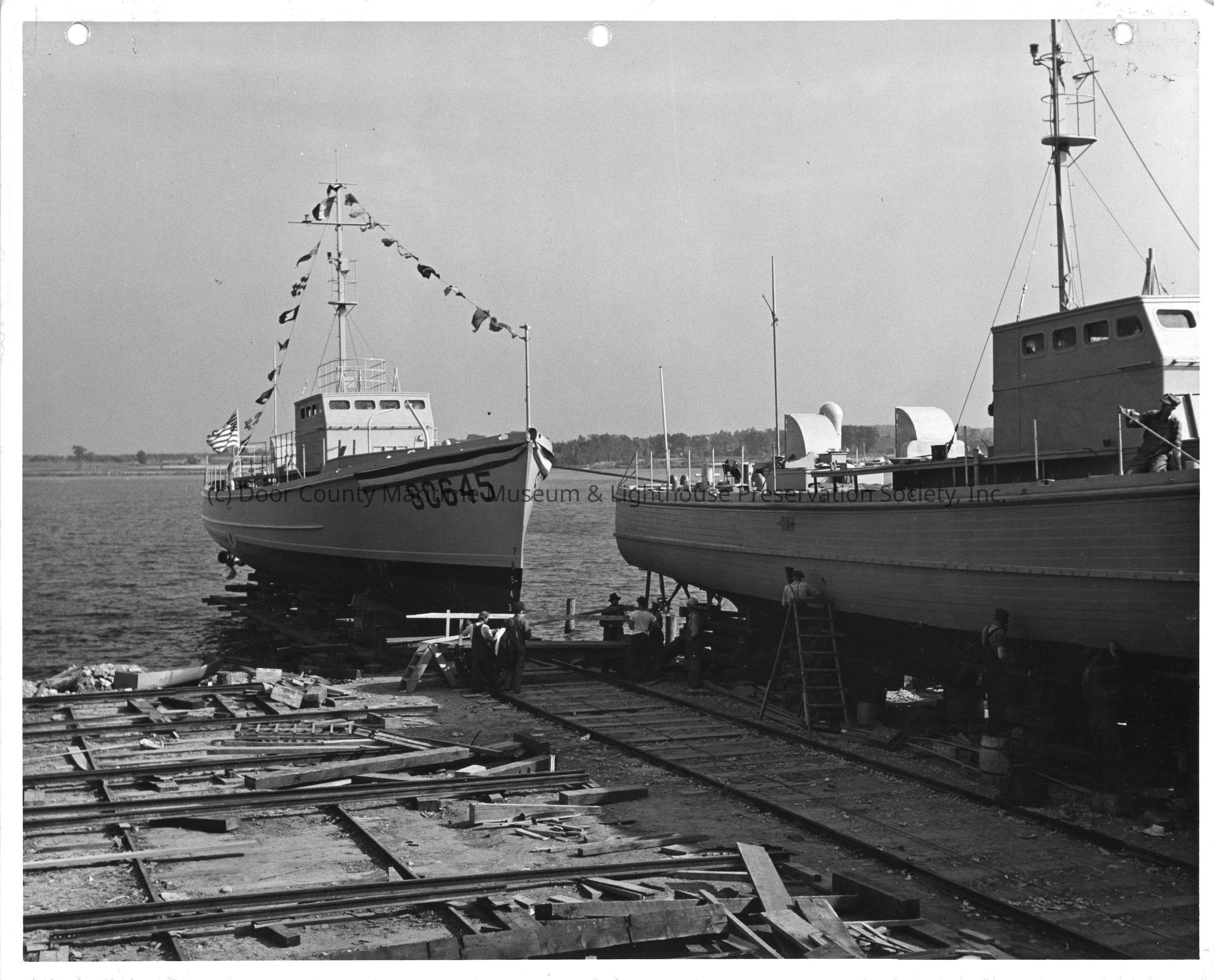 SC-645 on cribbing at Peterson Boat Works June 27, 1942