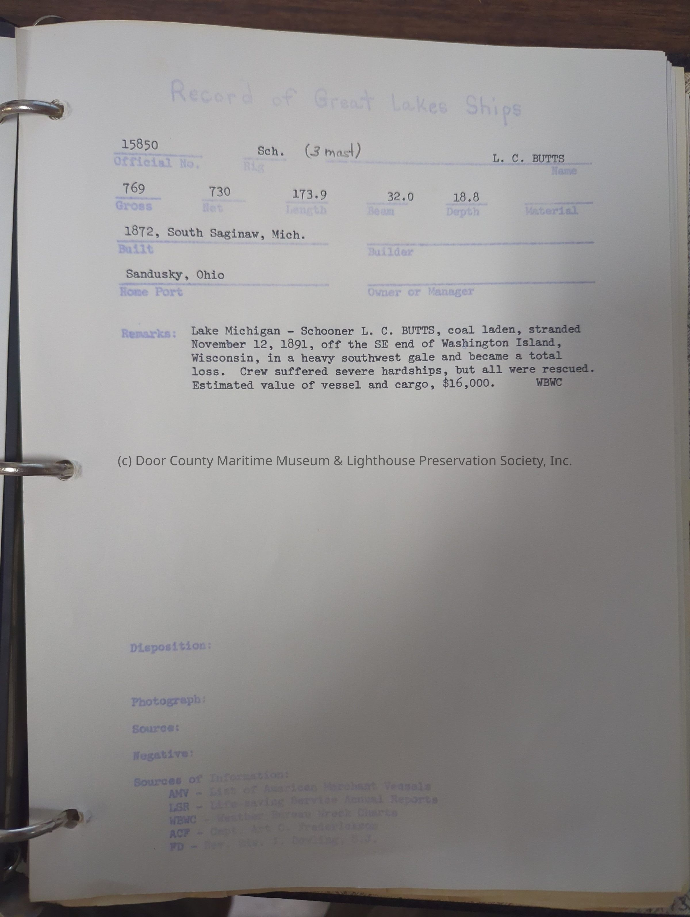 Contains records of Great Lakes Ships