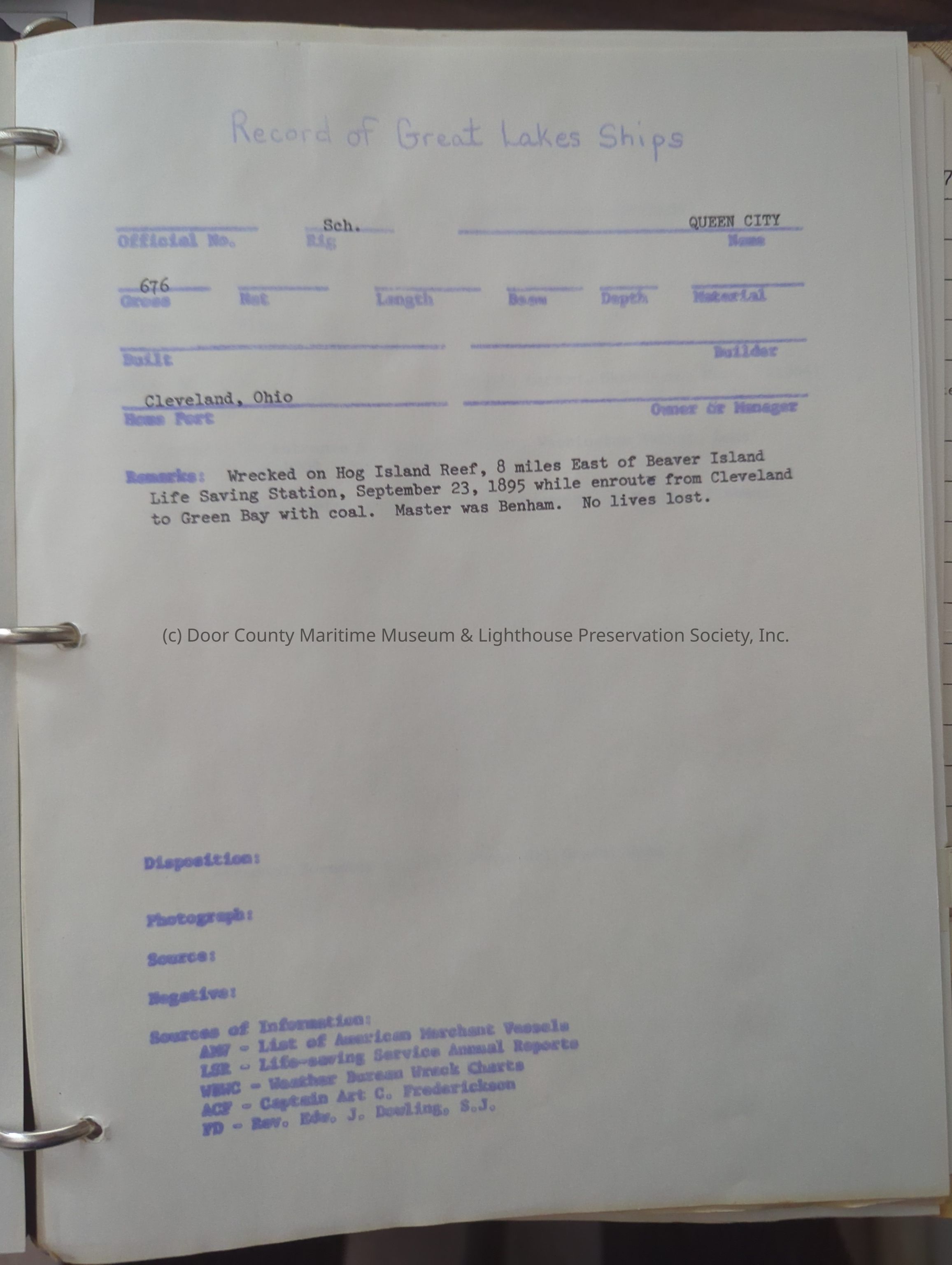 Contains records of Great Lakes Ships