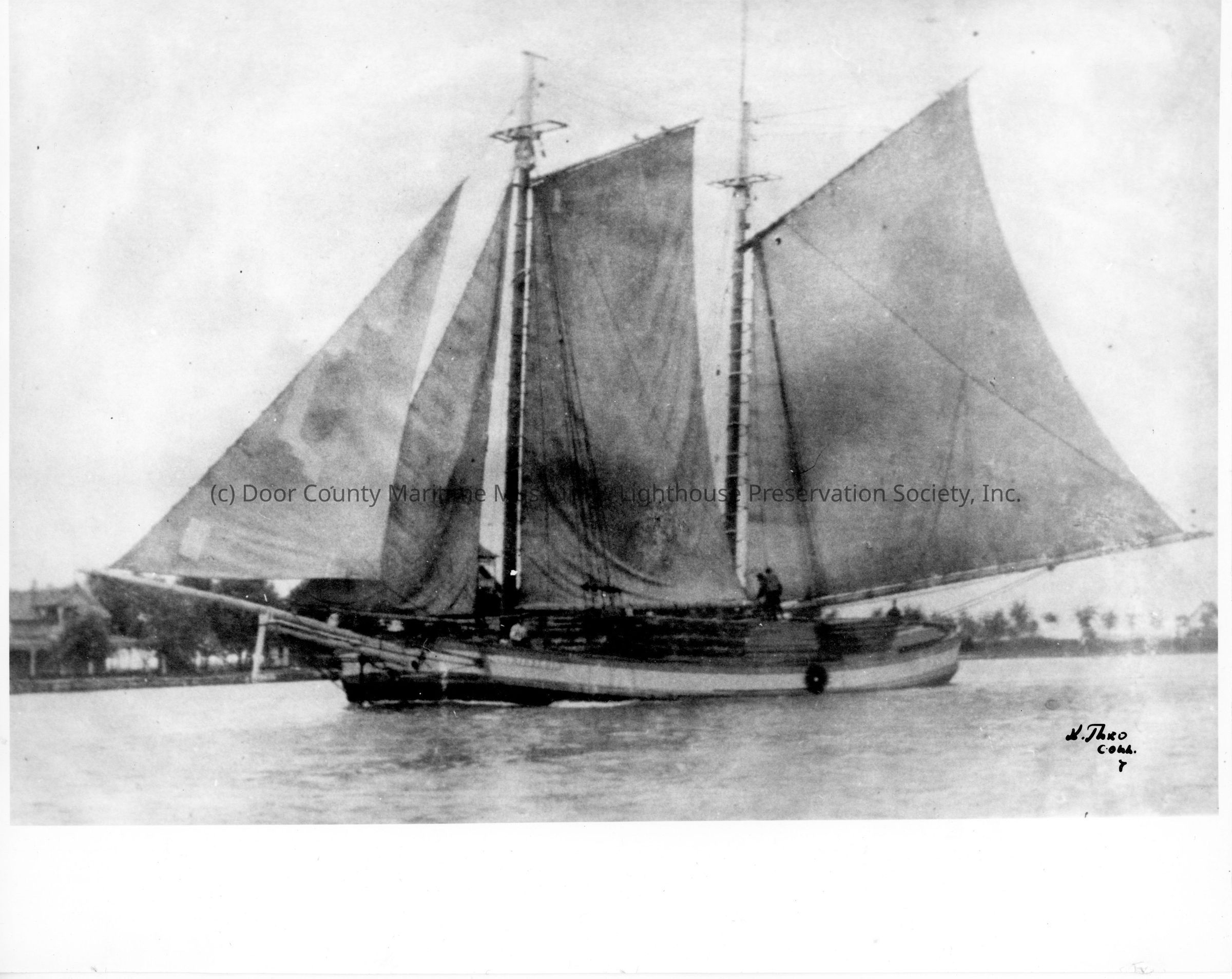 Schooner Garibaldi underway. sails up. land in backgroundLocation