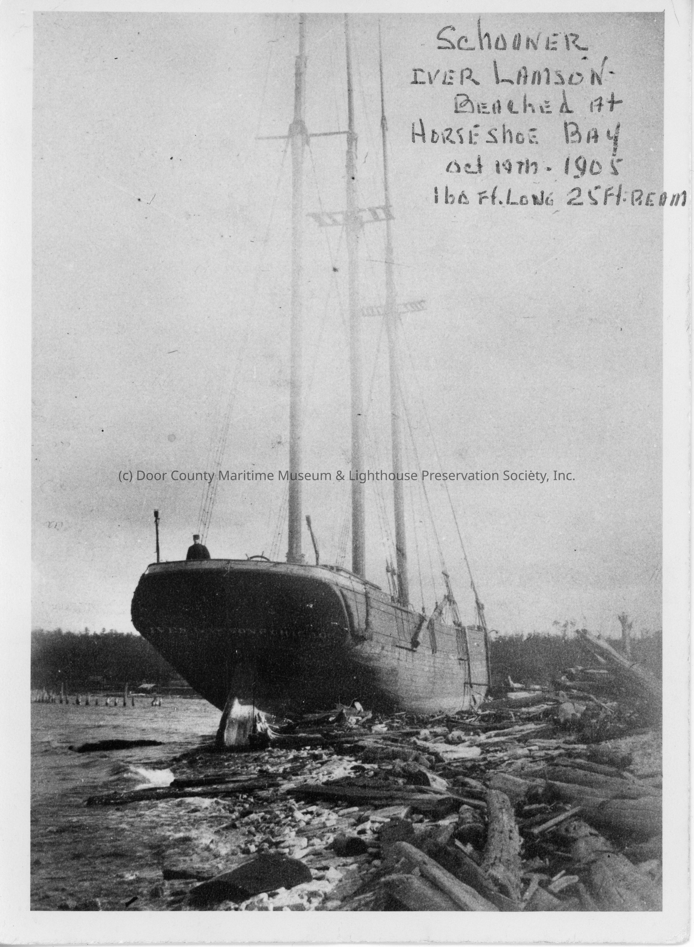 Schooner Iver Lawson beached at Horseshoe Bay October 19, 1905