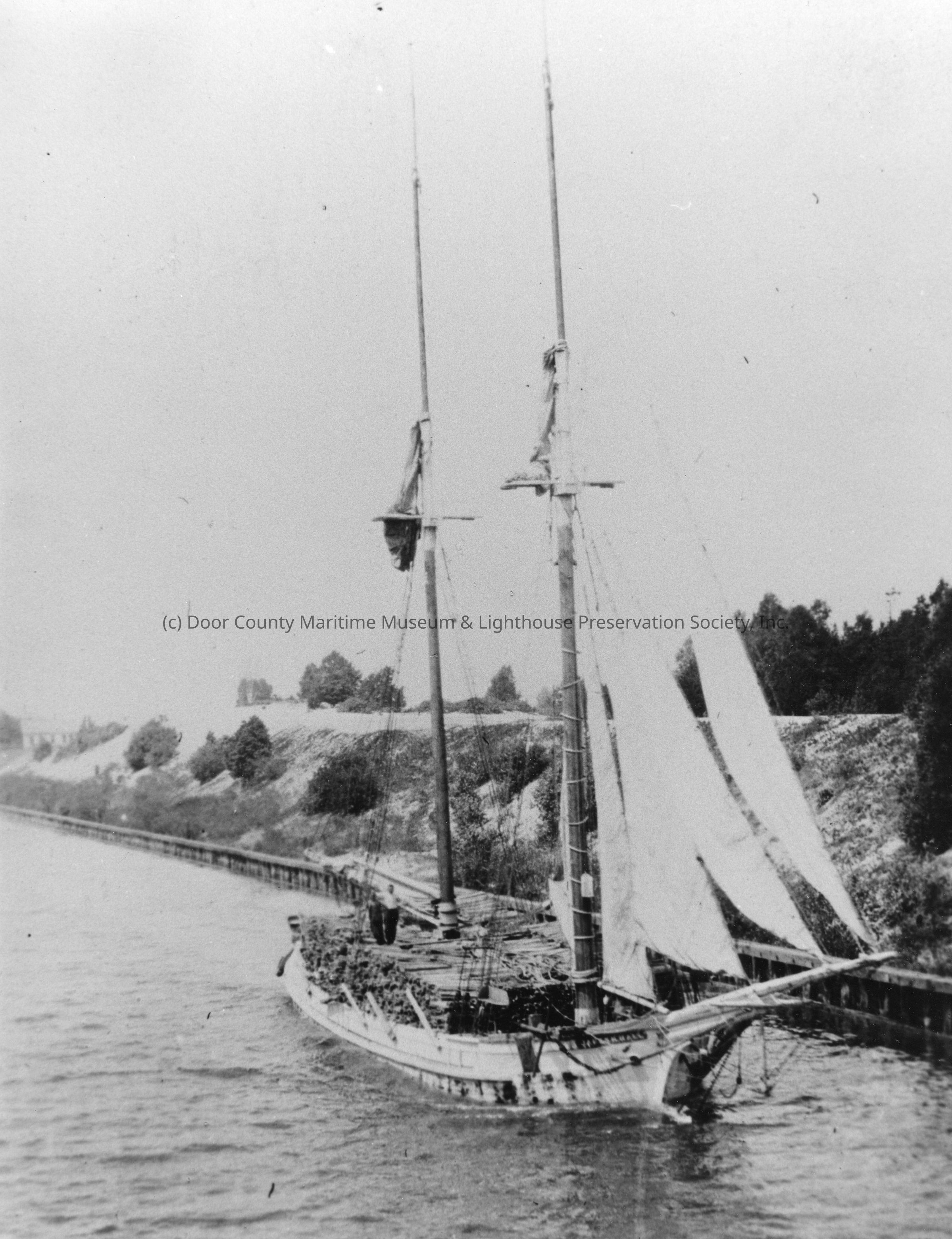 Schooner James Hall going through the Sturgeon Bay Ship Canal August 10, 1898Entry/Object ID