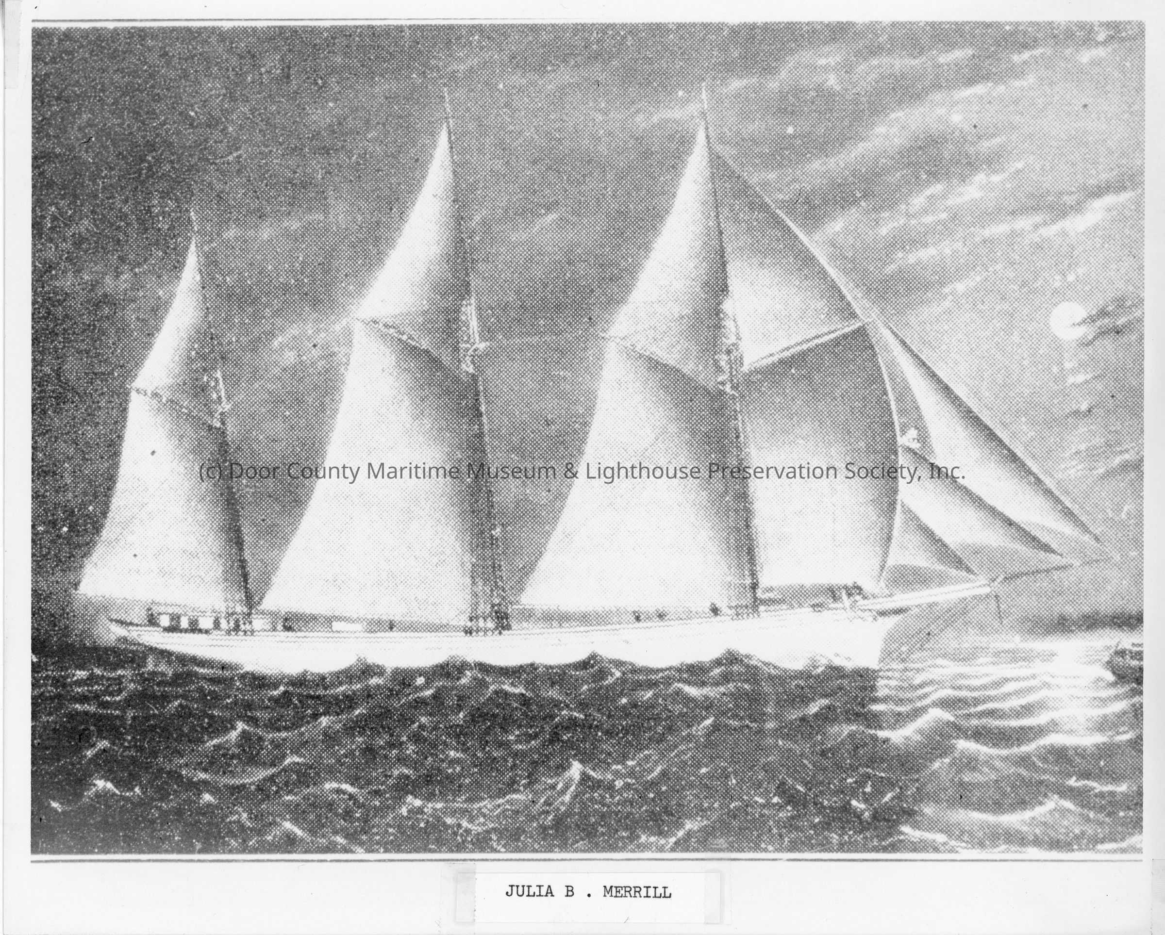 Photograph of a drawing of the schooner Julia B. Merrill underwayLocation