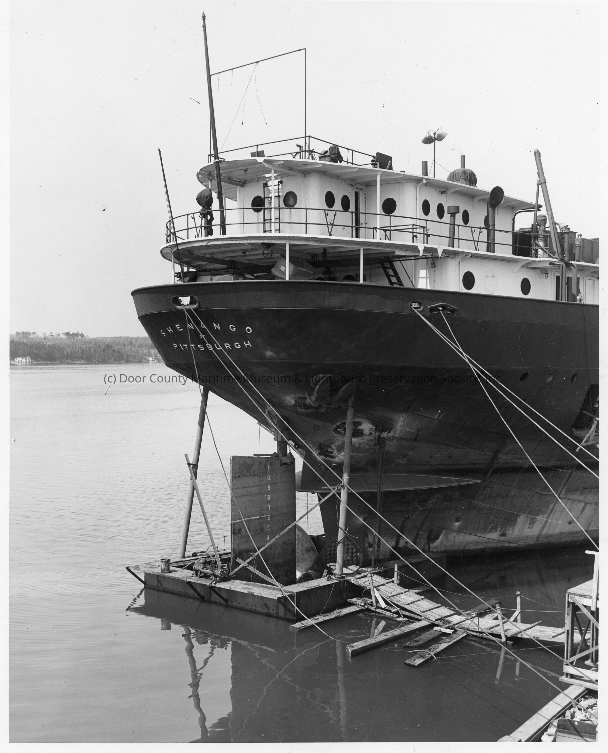 Shenango's propeller in cofferdam at Christy Corp April 15, 1952