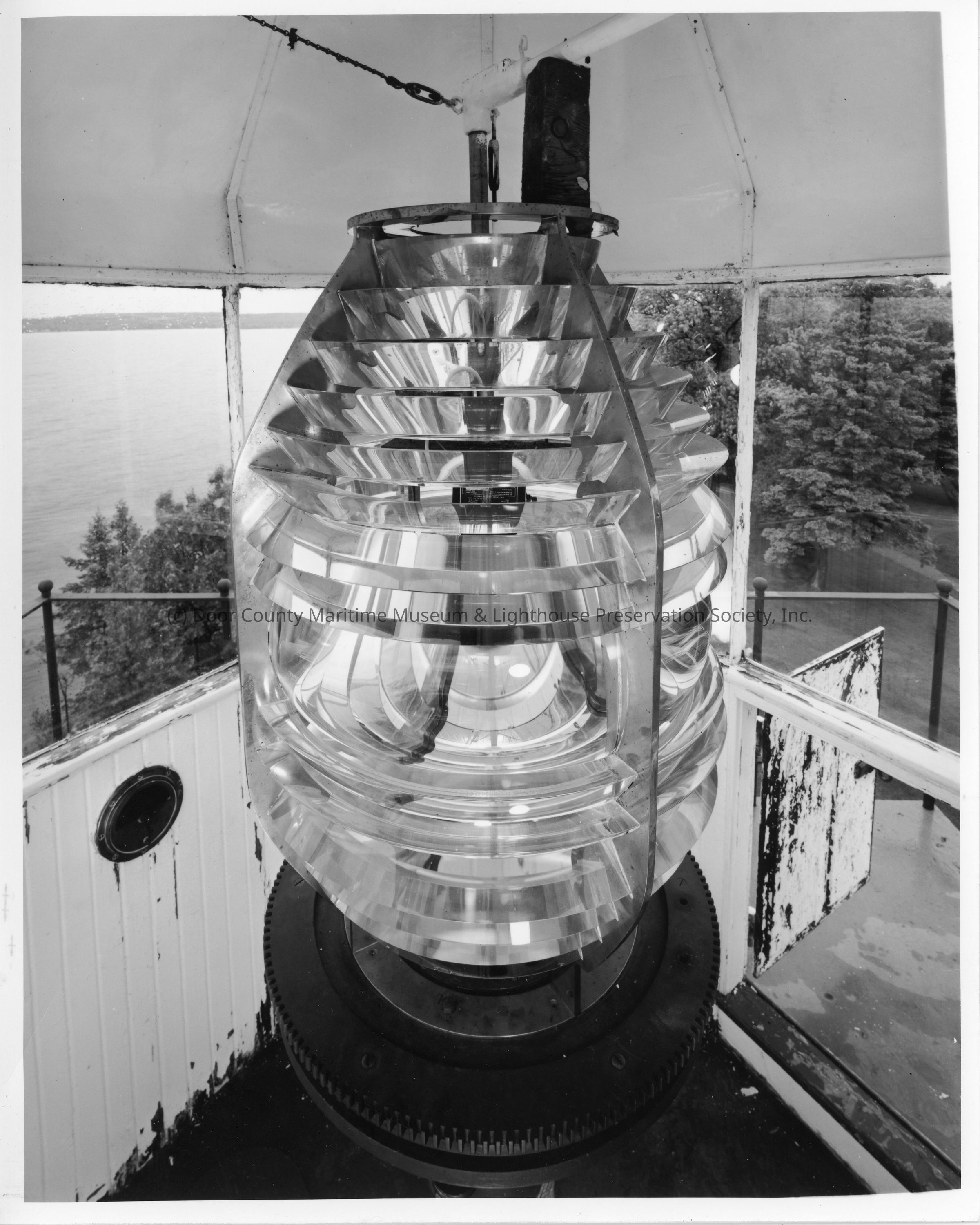 Sherwood Point Lighthouse view of lens within lantern room 2002