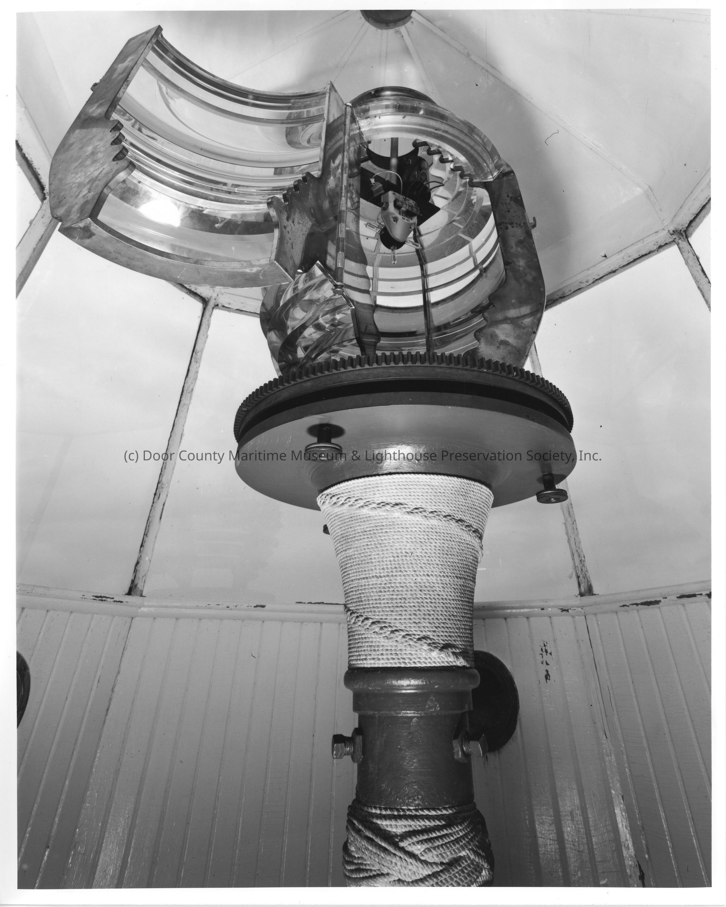 Sherwood Point Lighthouse view of lens within lantern room 2002