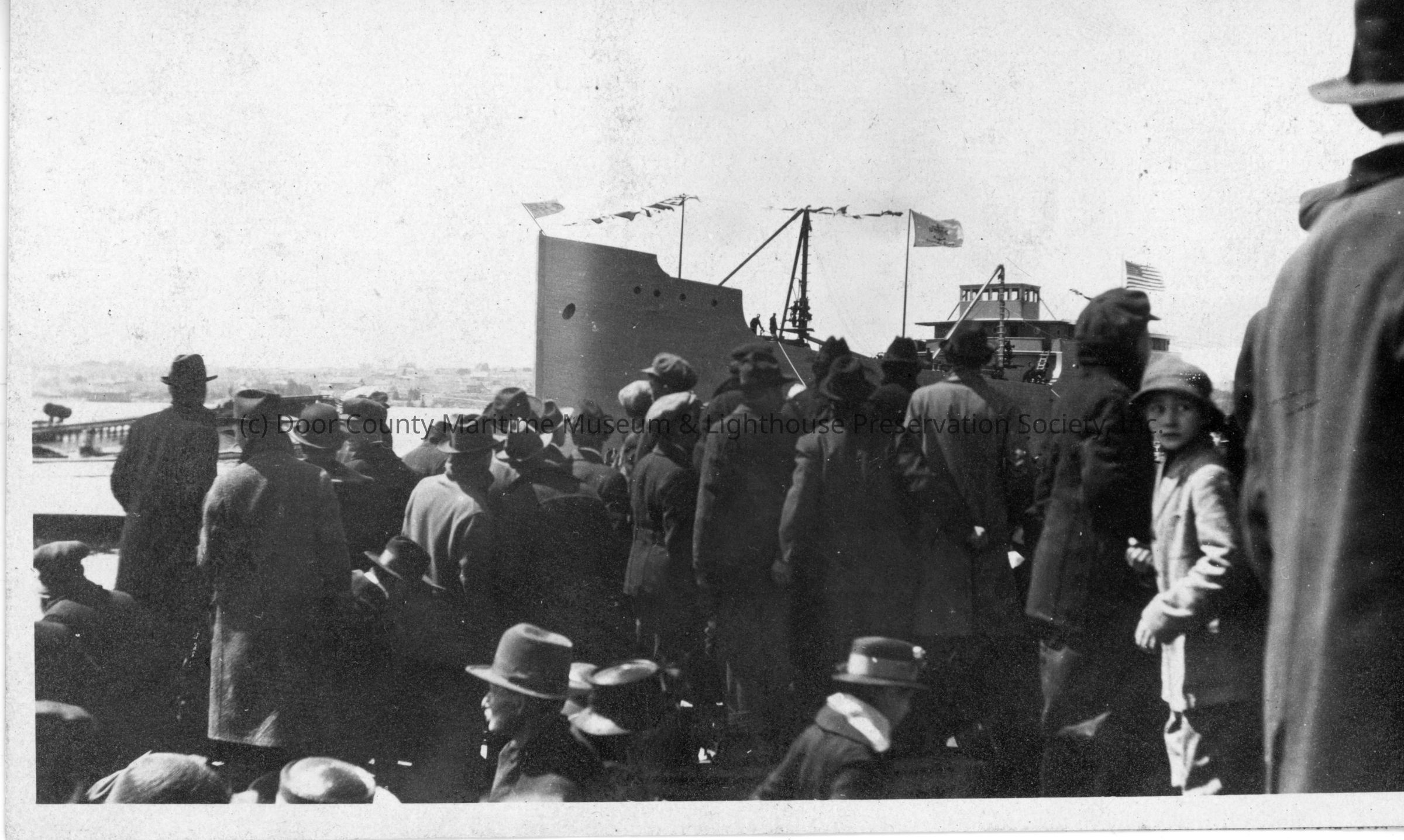 Ship in background with group of people in foreground