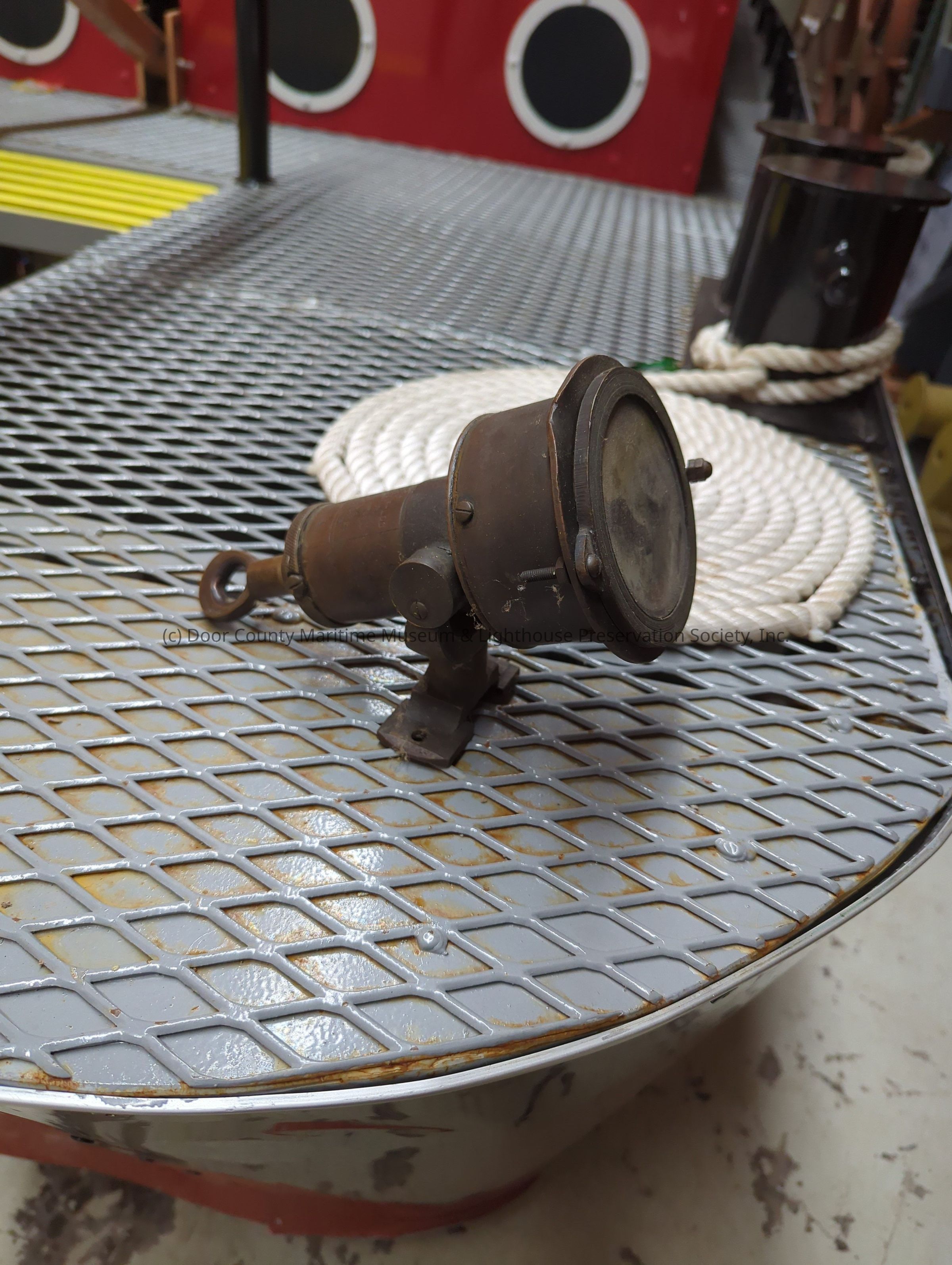 Walker's Cherub ship log mark III. ID information engraved on body of log. Rotating eye at rear of device