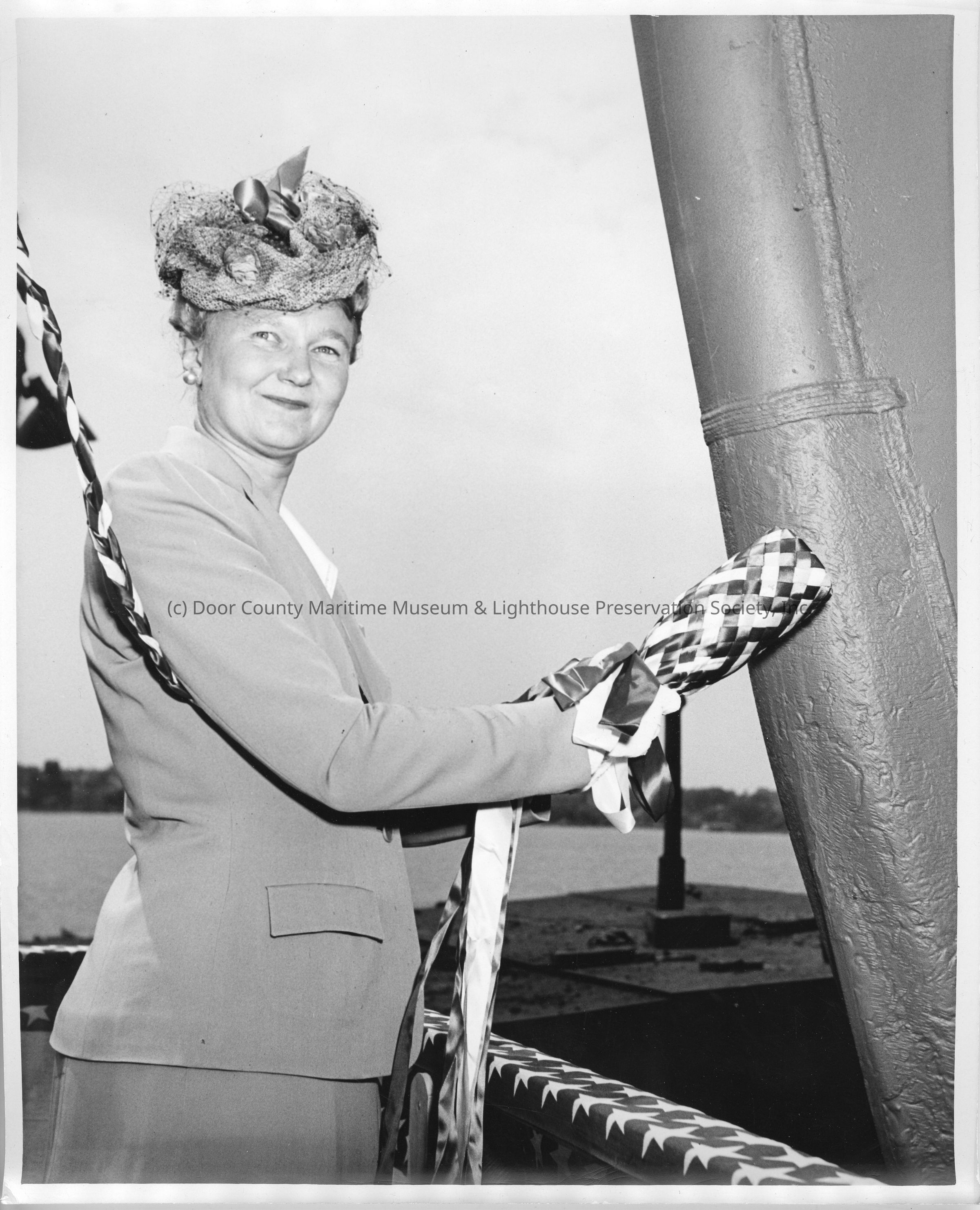 Ship sponsor about to christen Wexford at Leathem D. Smith Shipbuilding Co.Entry/Object ID
