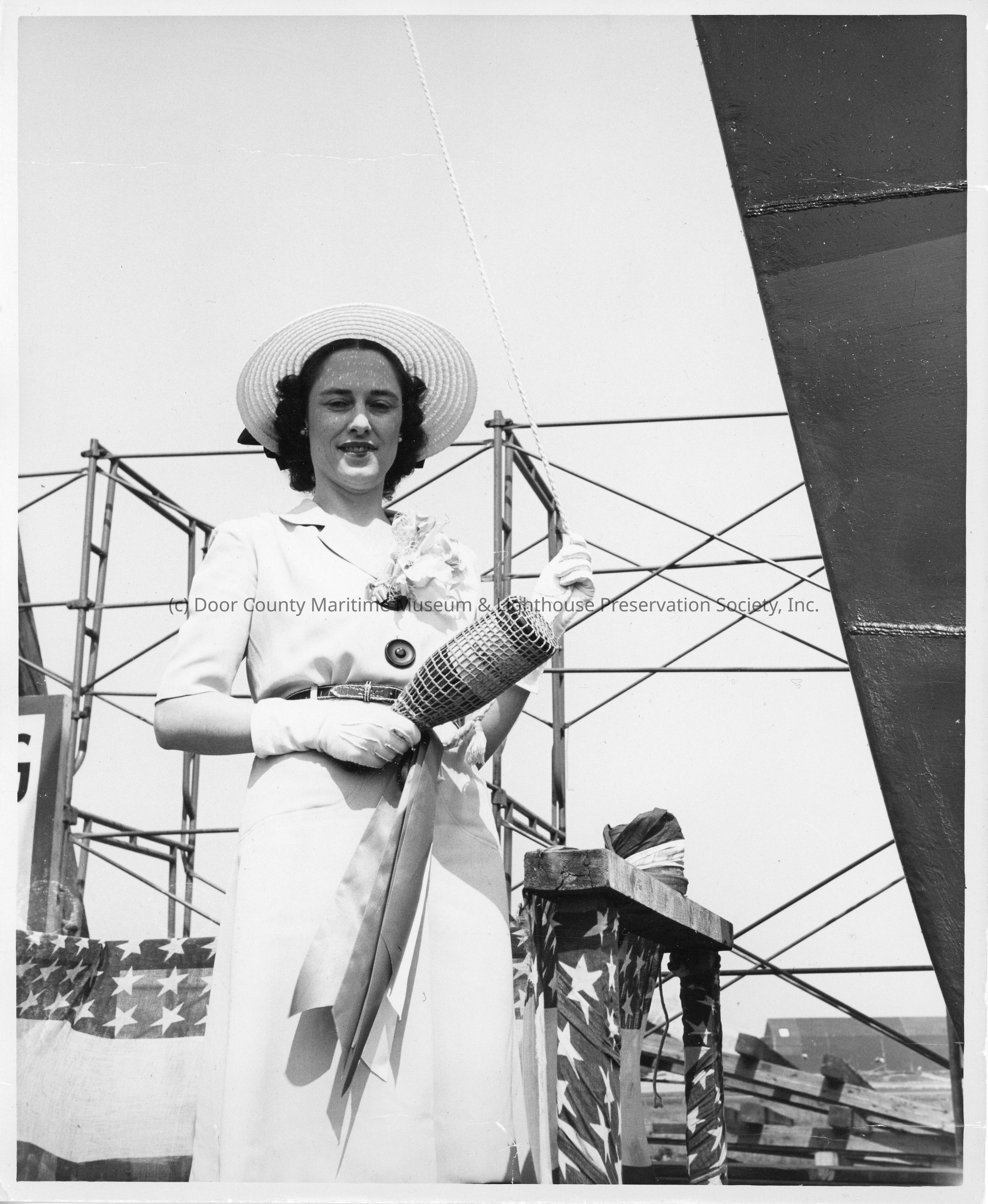 Ship sponsor holding christening bottle pre-christening