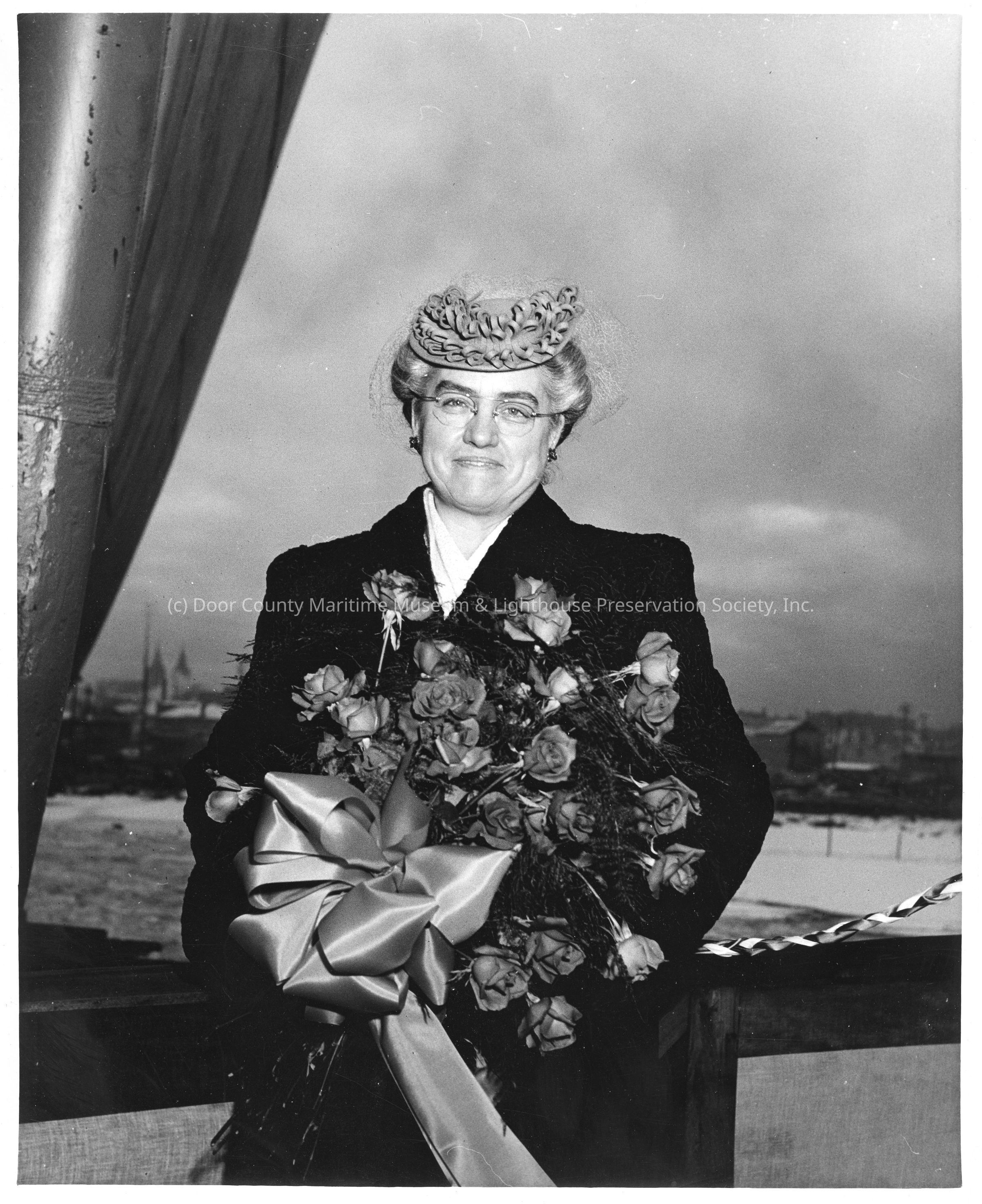 Ship sponsor holding flowers at christening of K-213 Sussex