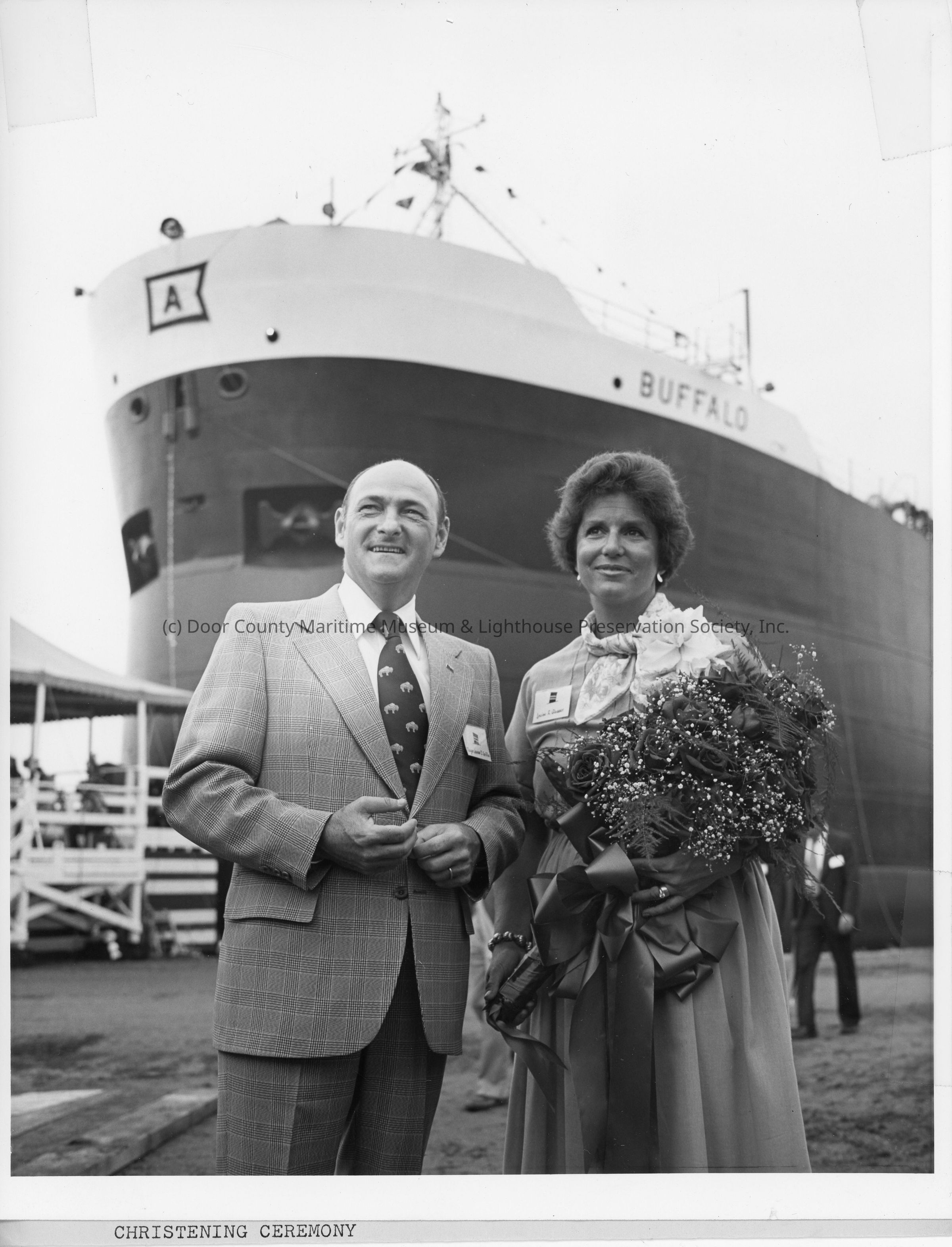Ship sponsor Mrs. Glasser and Buffalo mayor James D. Griffin at M/V Buffalo christeningEntry/Object ID
