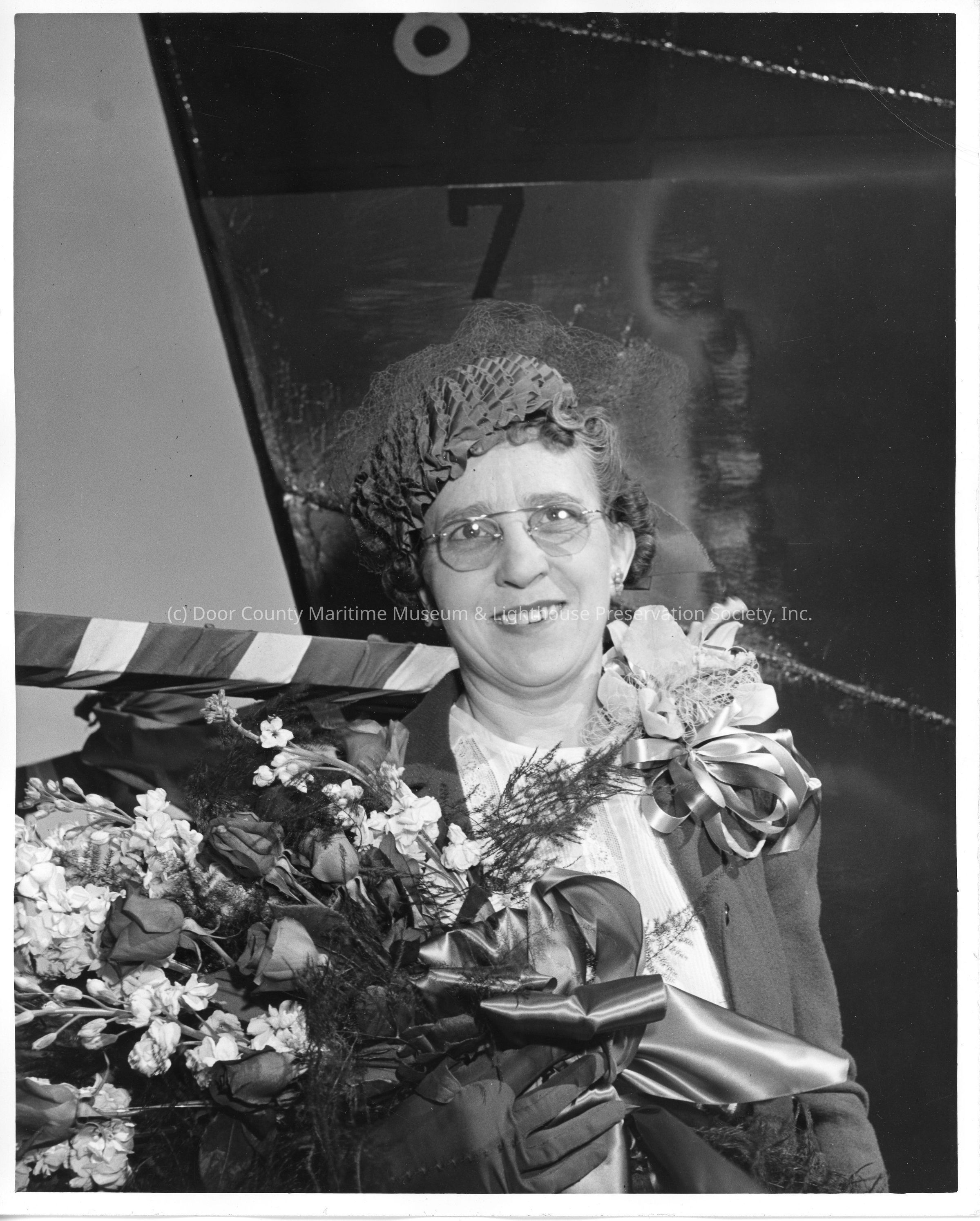 Ship sponsor with flowers at christening