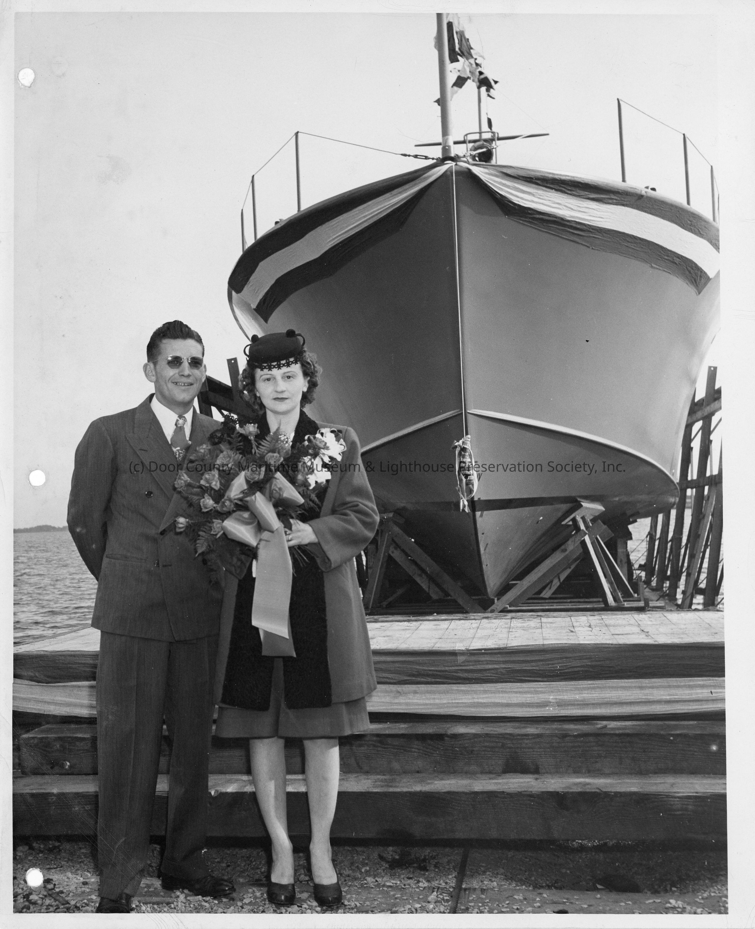 Ship sponsors posing in front of P-574 pre-christening at Peterson Boat Works September 30, 1944Entry/Object ID