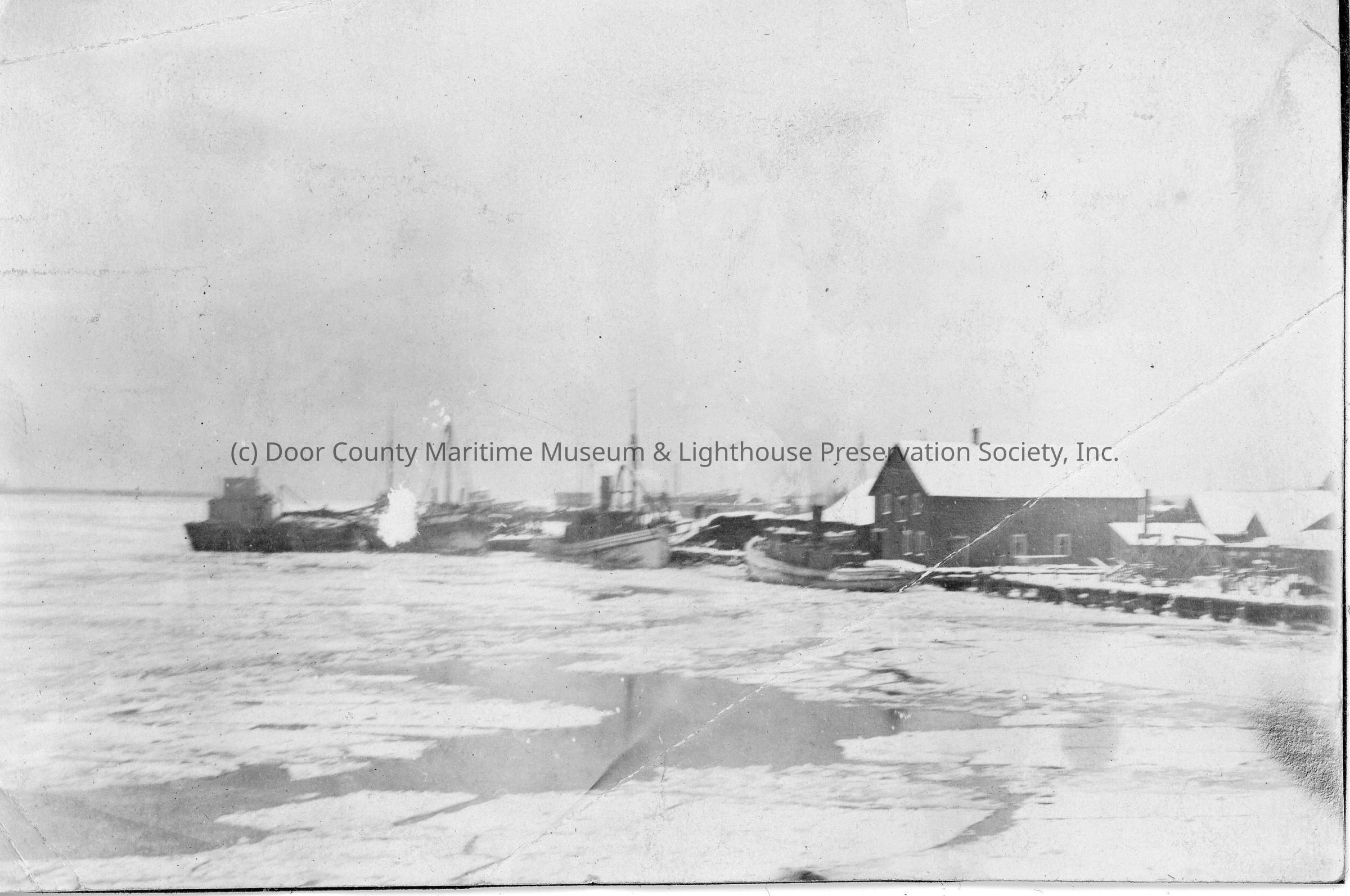 Ships at pier in winter