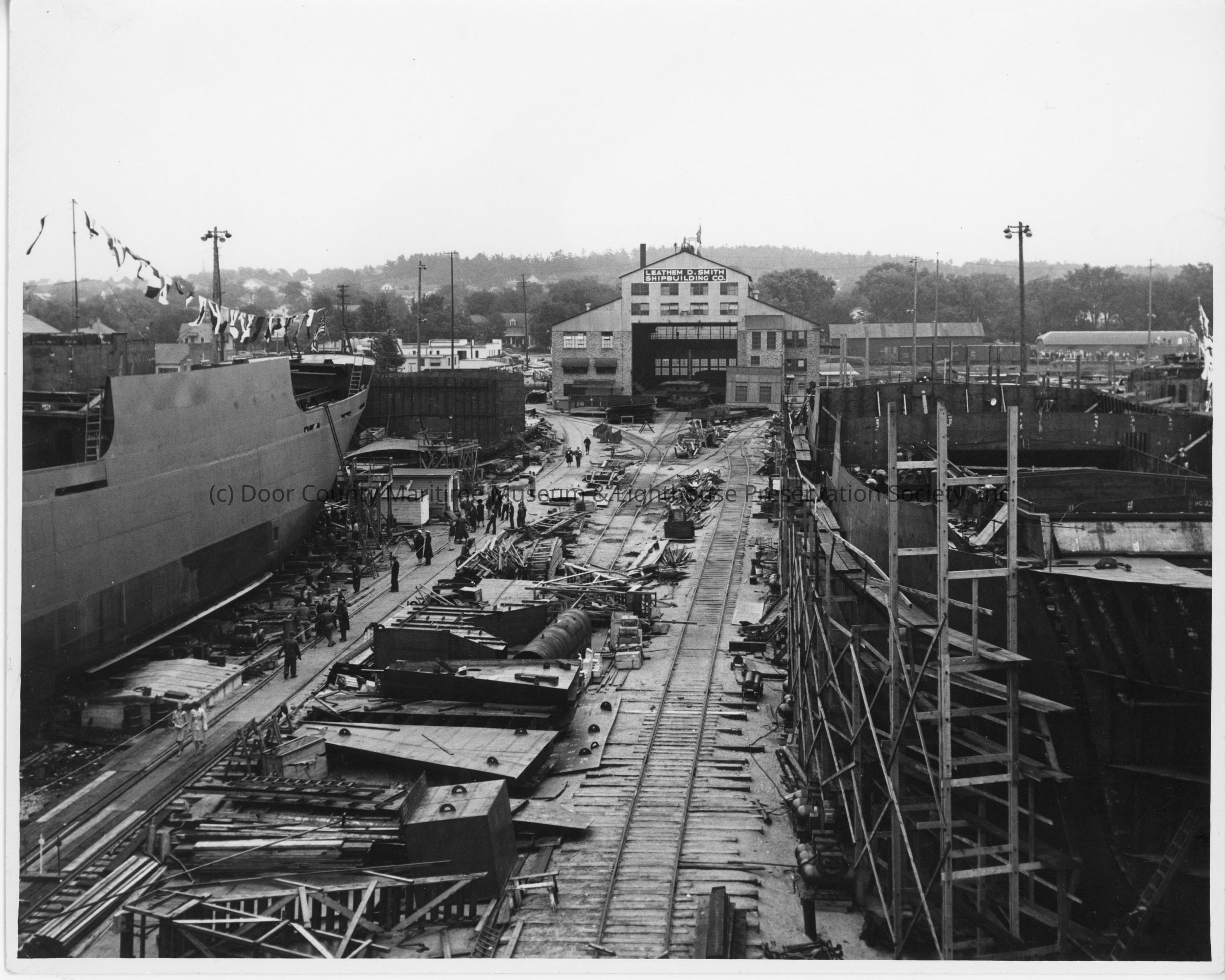 Ships under construction at Leathem D. Smith Shipbuilding 1940sEntry/Object ID