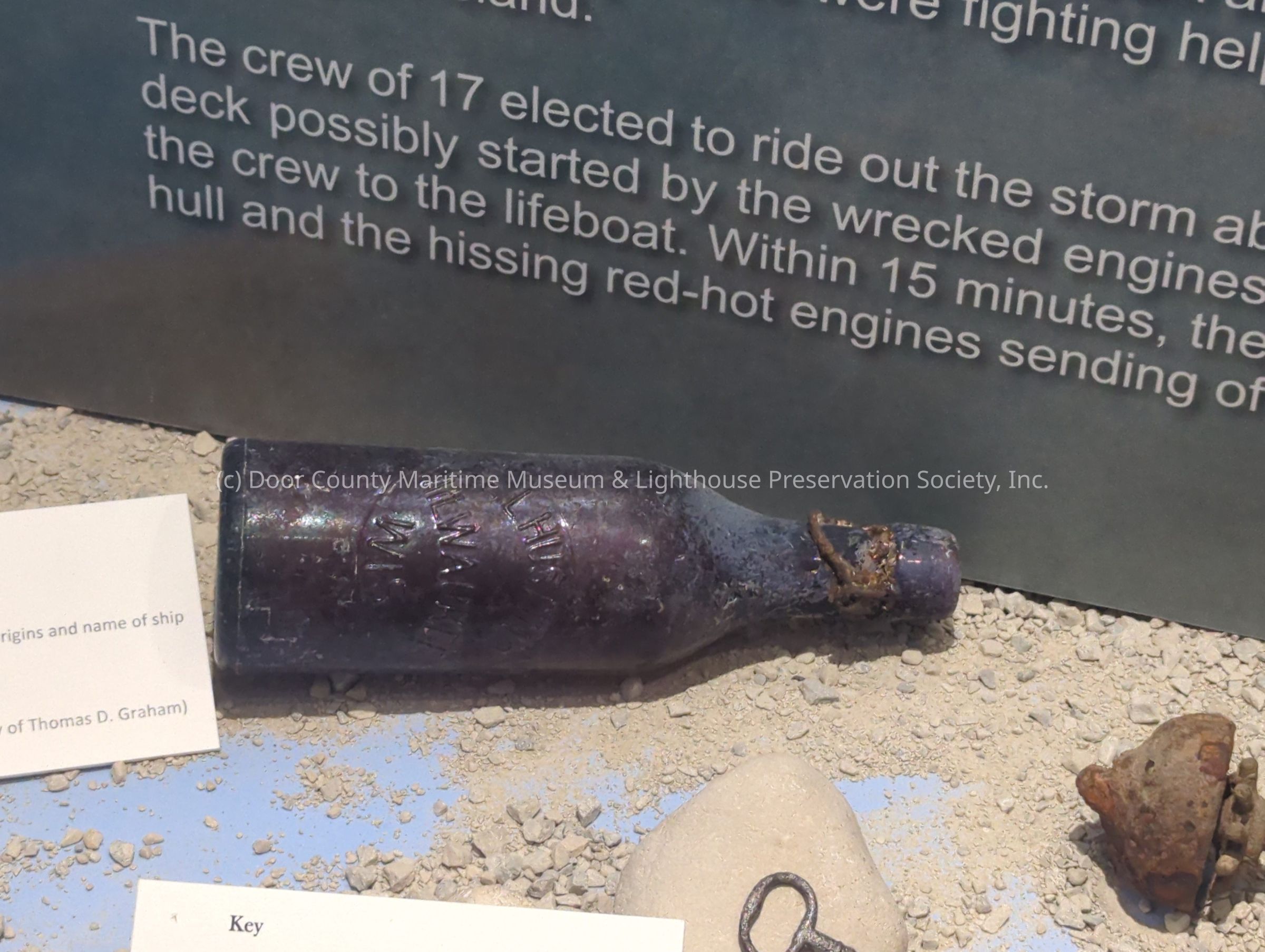 Brown glass bottle with white residue. "E.L. Husting Milwaukee Wis-" on one side. "This bottle not to be sold" on other side.Location
