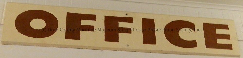 Wood sign, cream-colored background; brown print "OFFICE"; two nail holes.
