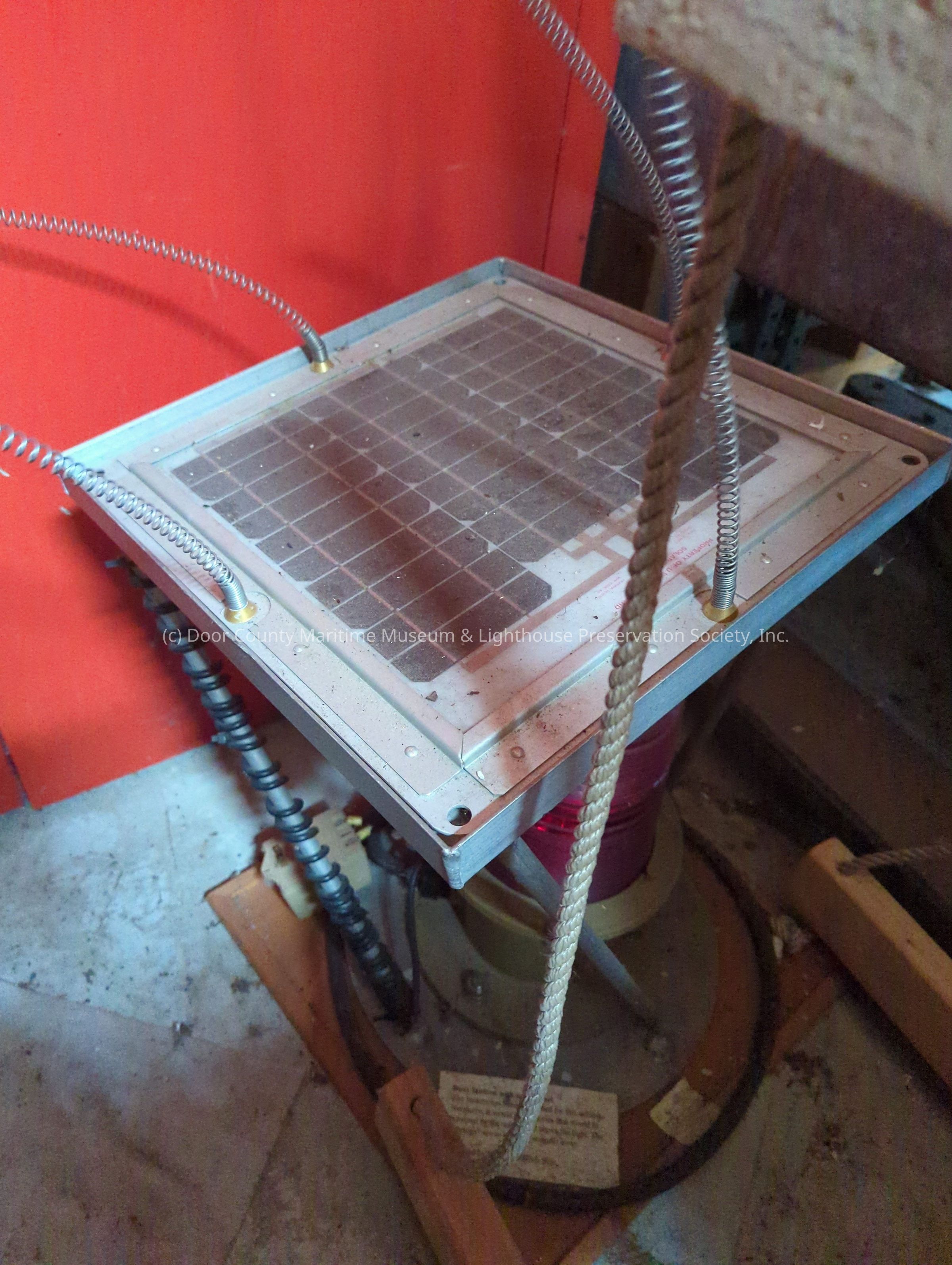 Solar power diode. Grey with black social cells attached to glass