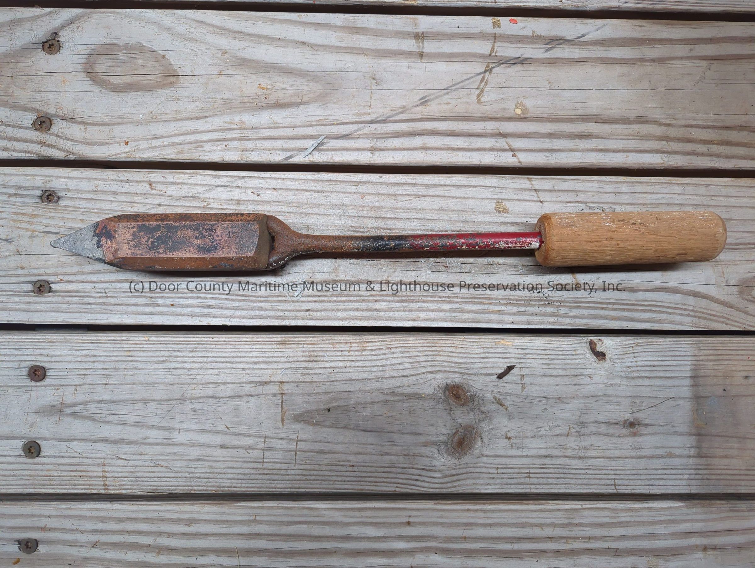 Wooden handle surrounding an iron rod