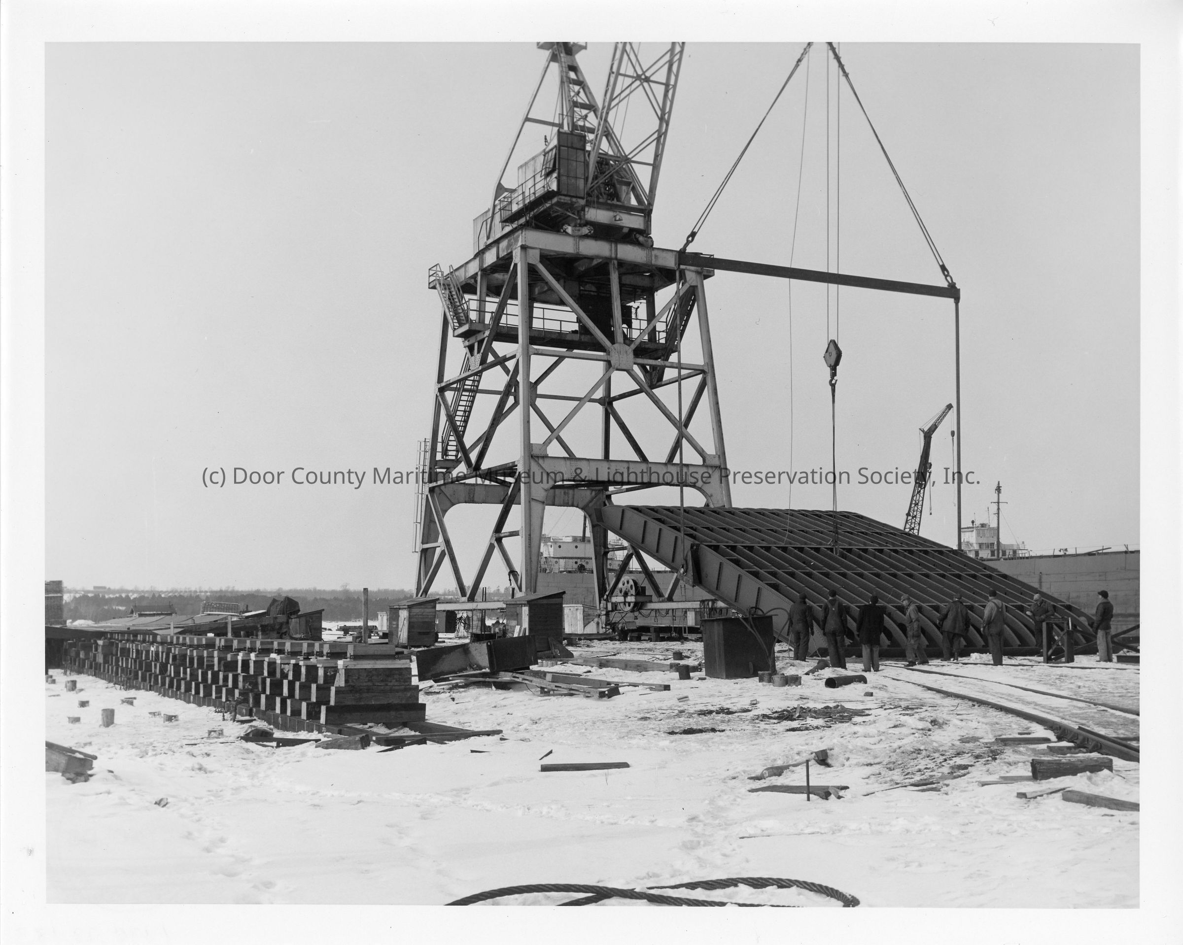 Spartan hull section being lowered January 15, 1951
