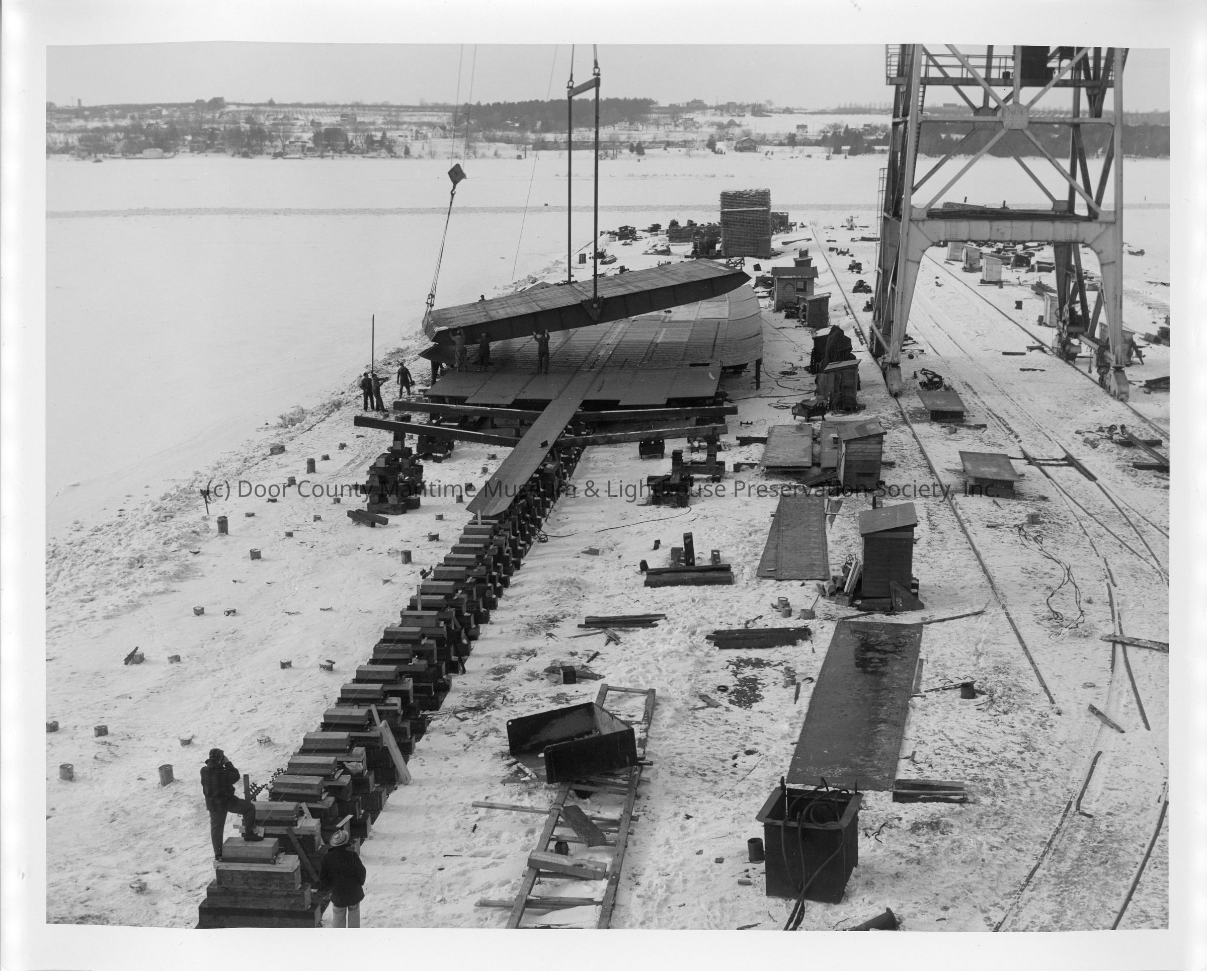 Spartan hull section being lowered January 15, 1951