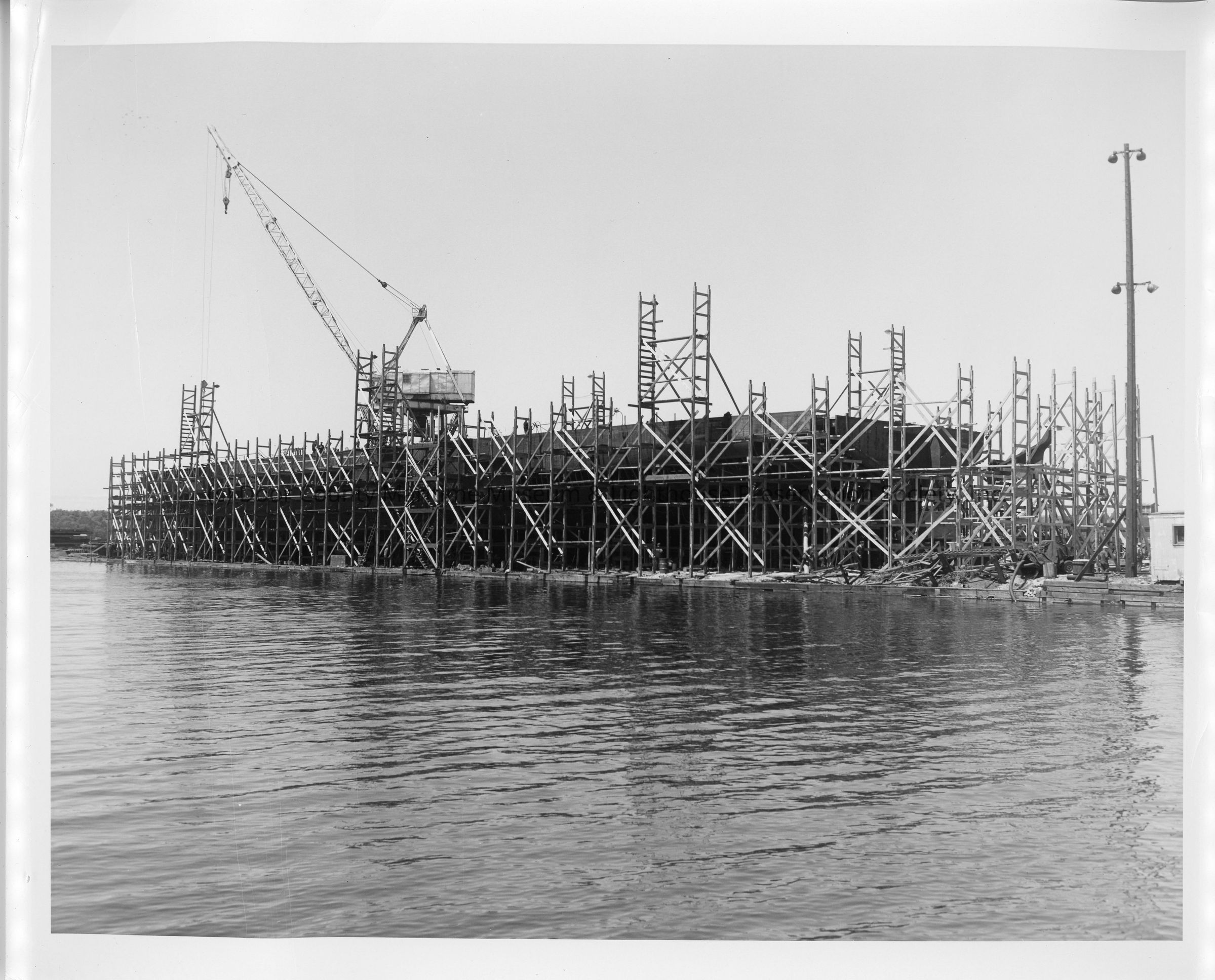 Spartan in scaffolding next to gantry crane June 1, 1951Entry/Object ID