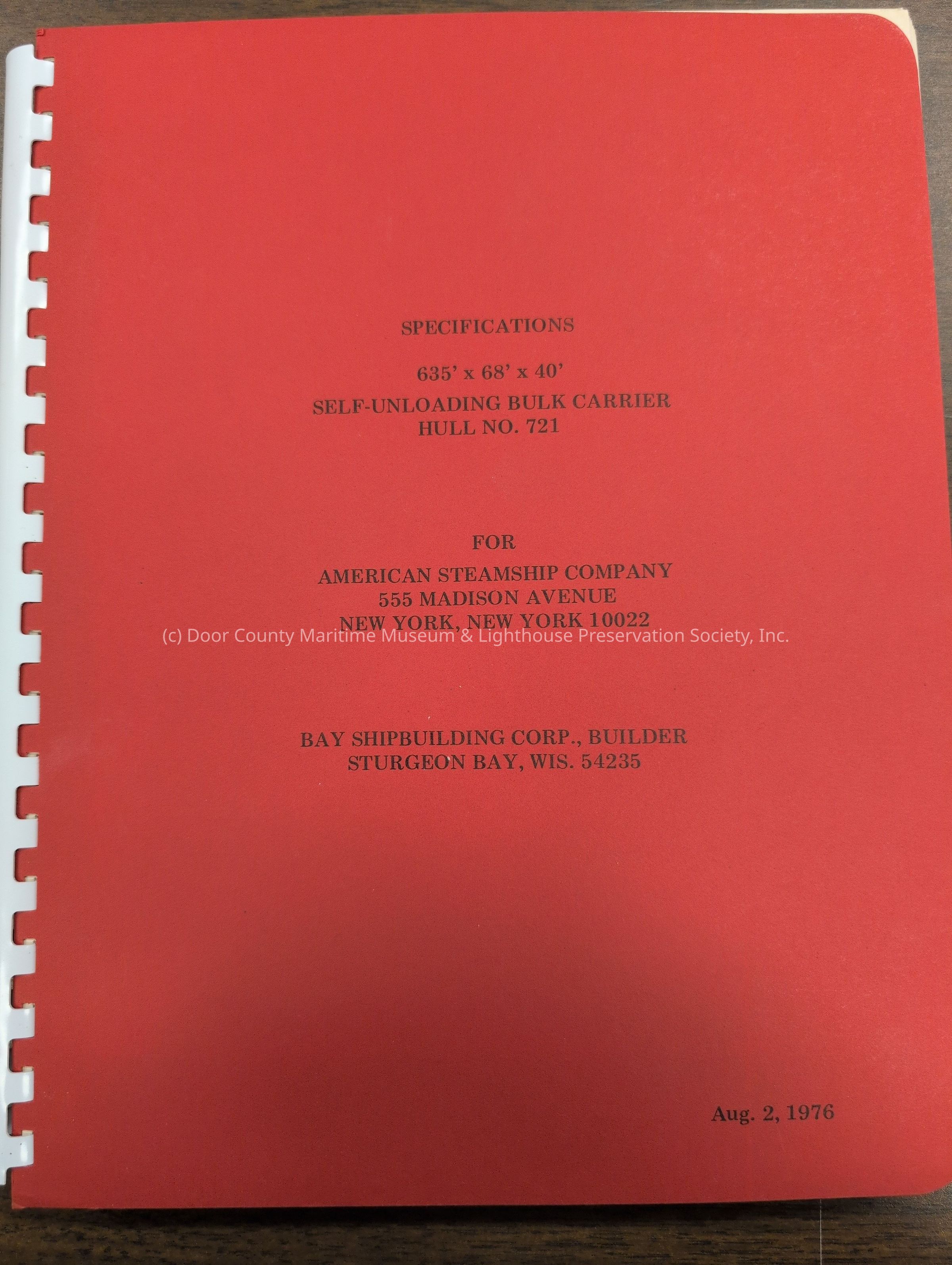 Specifications for self-unloading freighter Buffalo