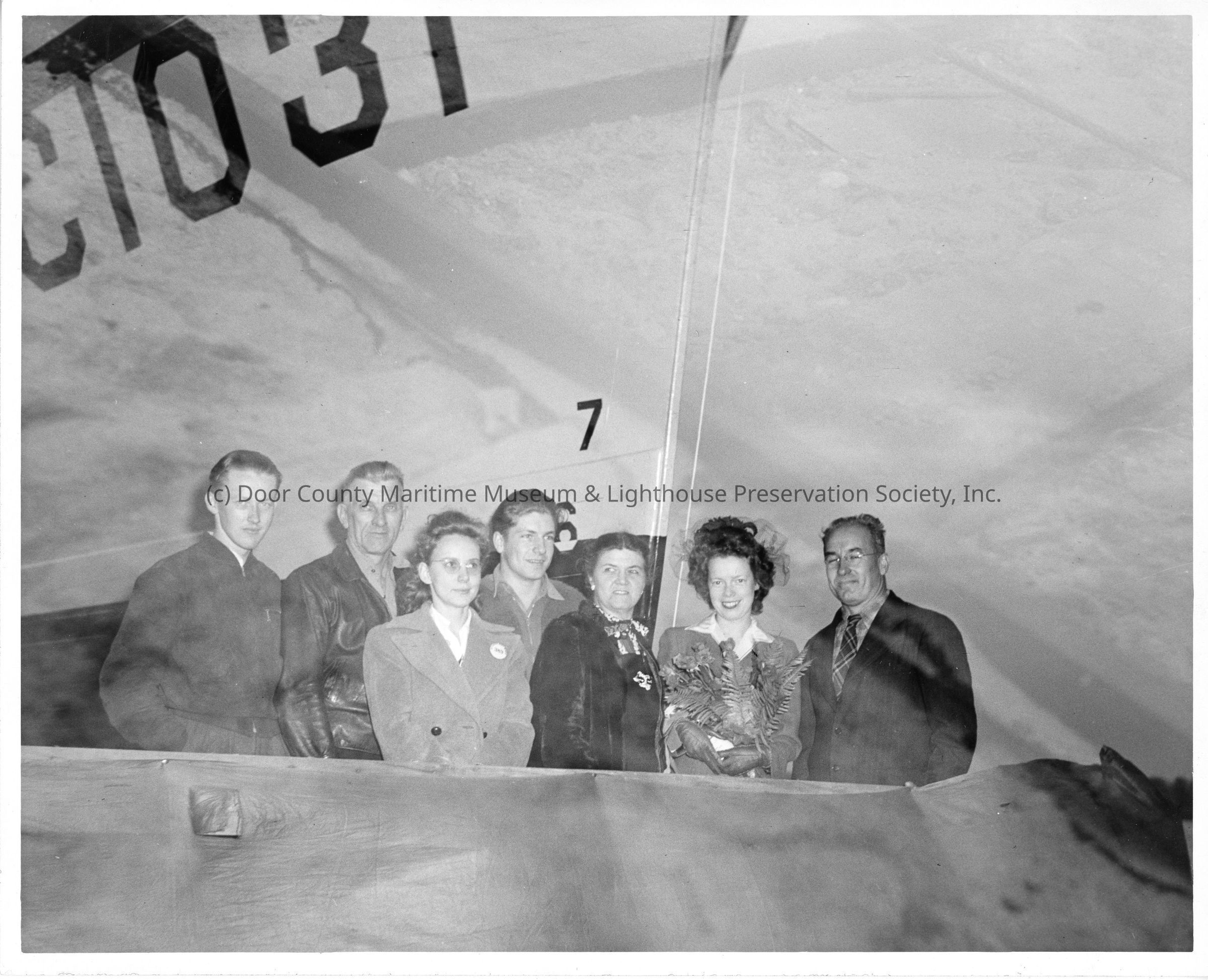 Sponsor party in christening box along with Fred Peterson at christening of SC-1031 October 3, 1942Entry/Object ID
