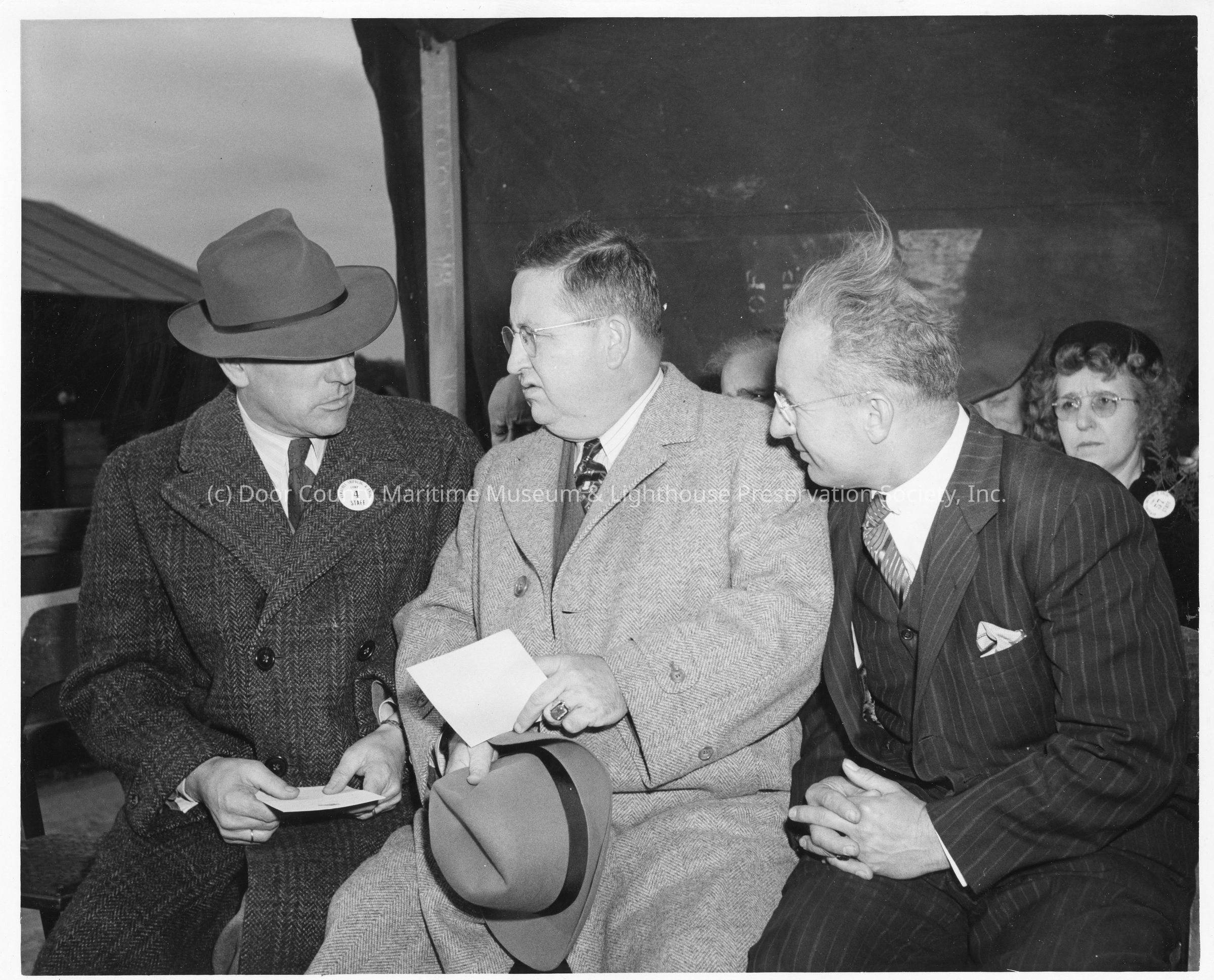 Sponsor party sitting at ship christening at Peterson Boat Works