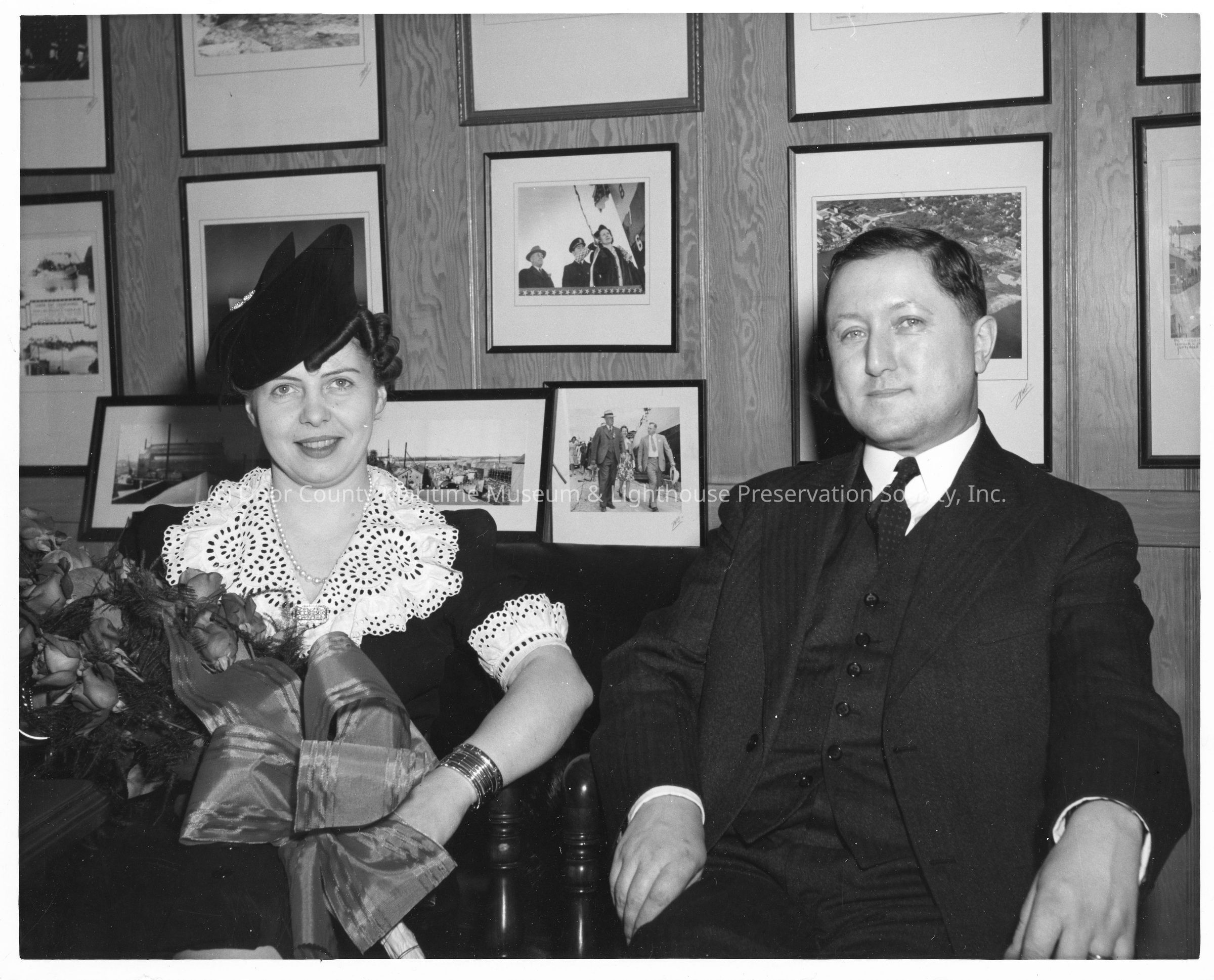Sponsor with roses sitting next to unidentified man in dark suitEntry/Object ID