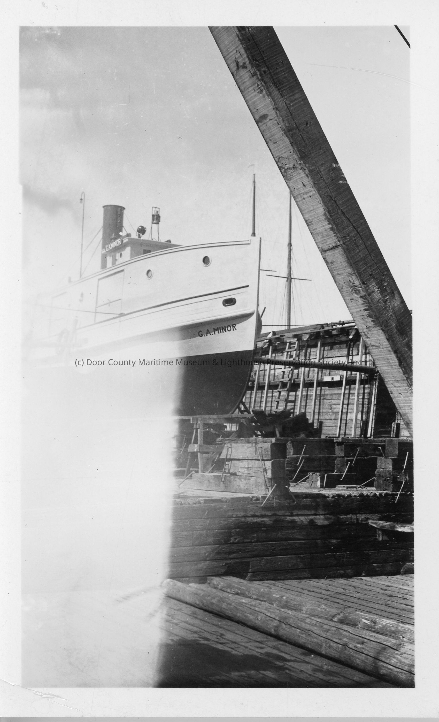 Starboard bow view of fishing tug G.A. Minor in drydock at SBSB&DD Co.Entry/Object ID