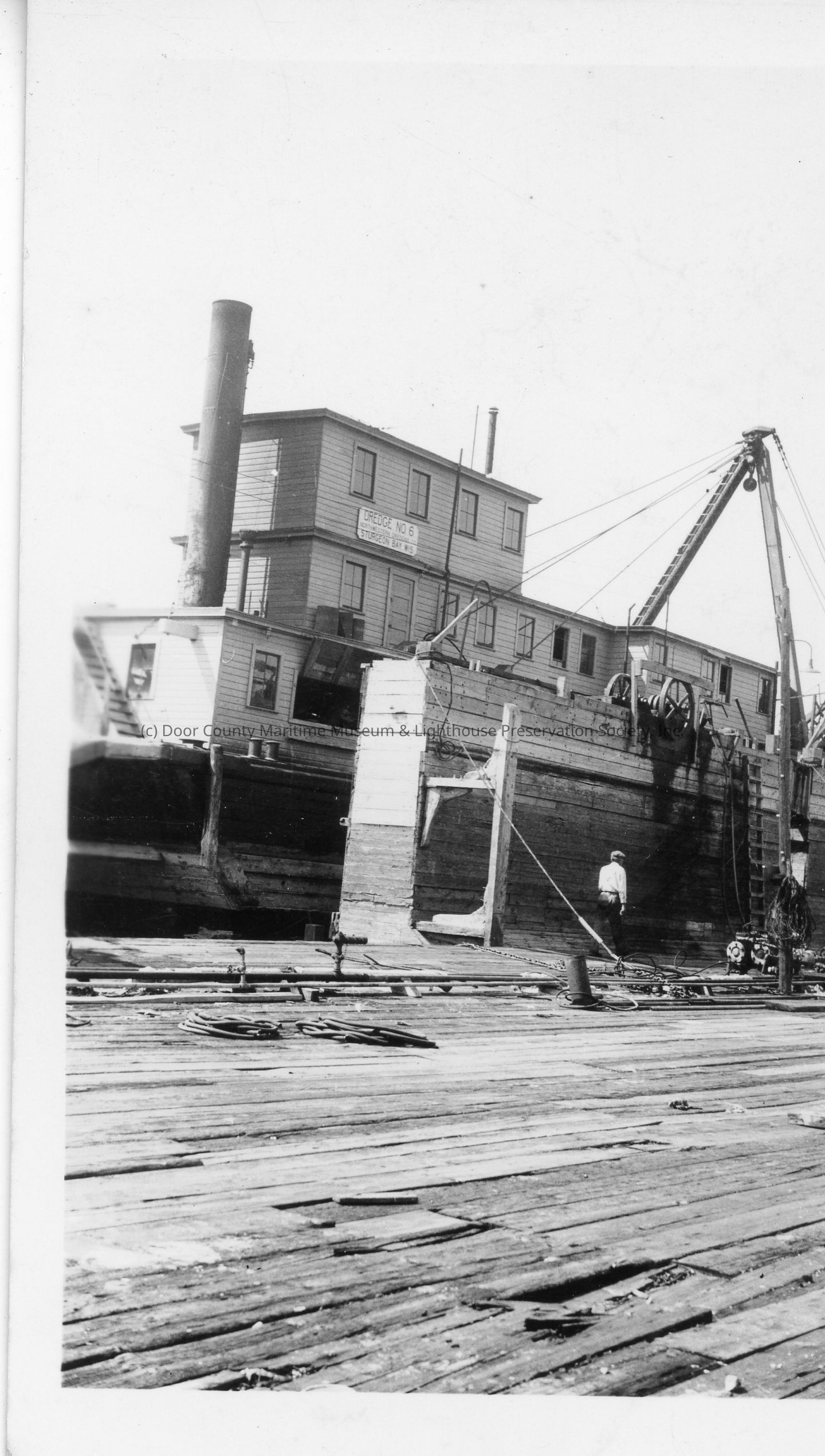 Starboard stern view of Dredge No. 5 in drydock