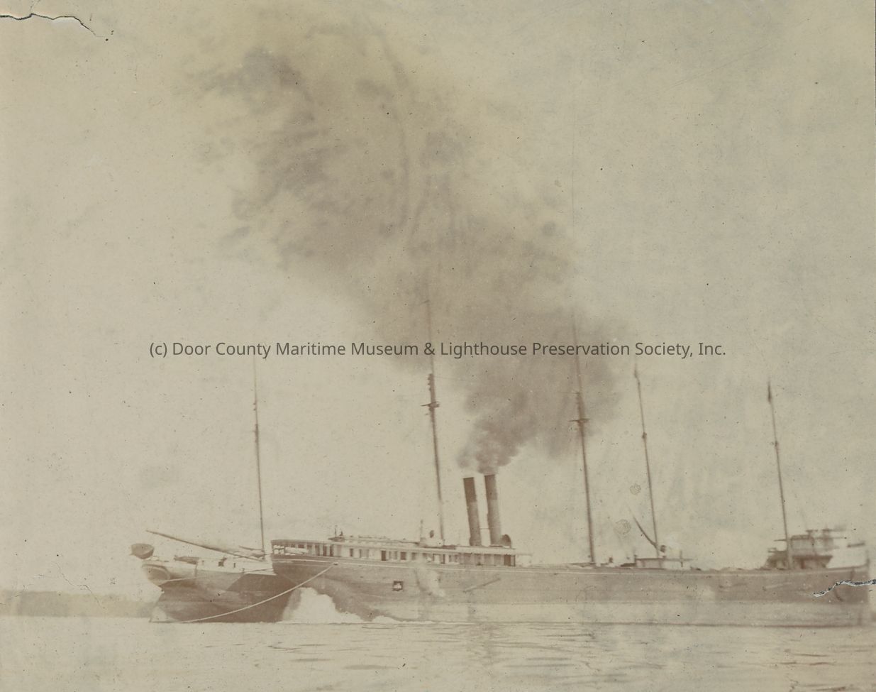 Unidentified steamer tied alongside unidentified sailing vessel
