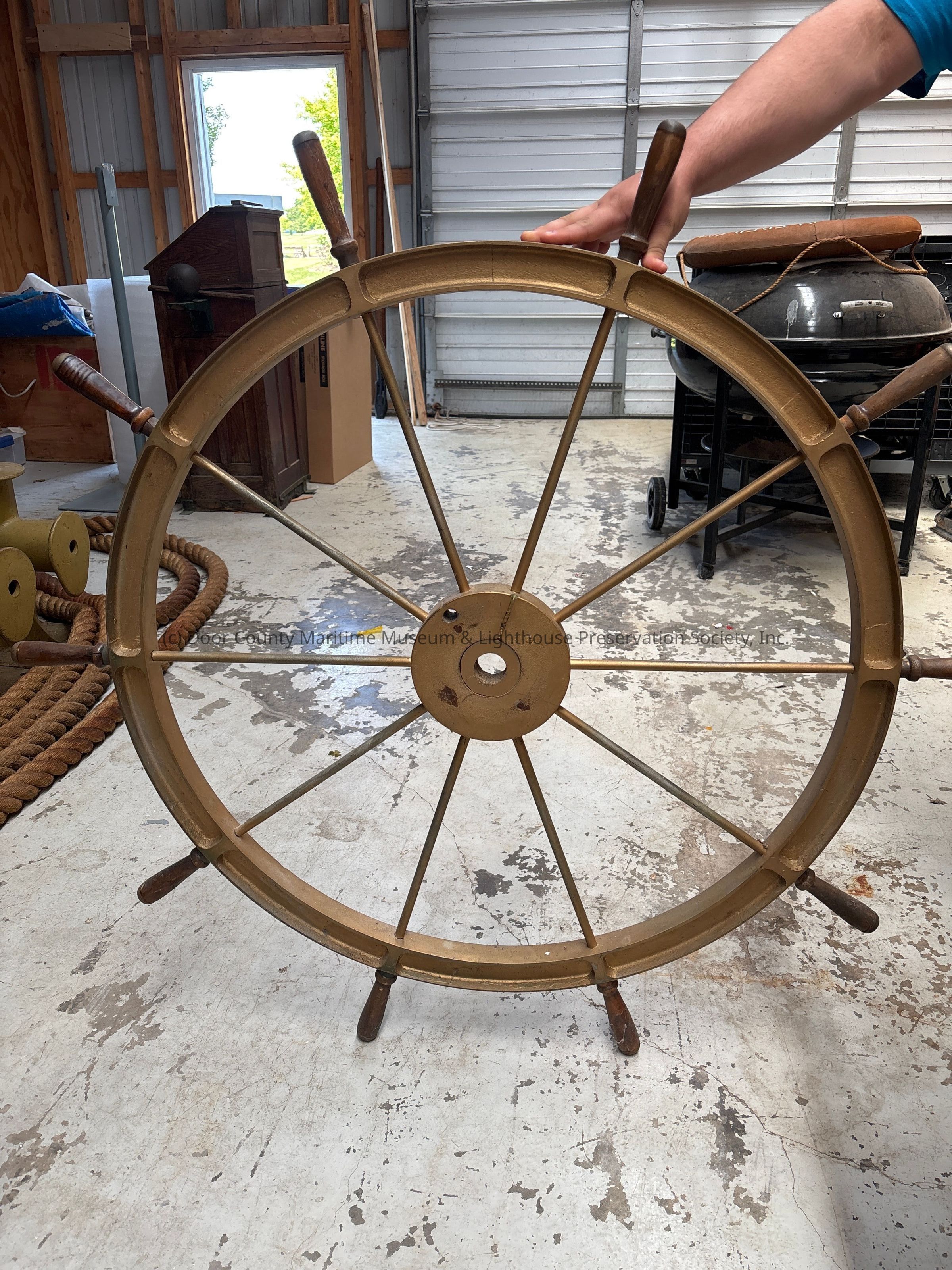 Steering wheel with 10 metal spokes and wooden handles