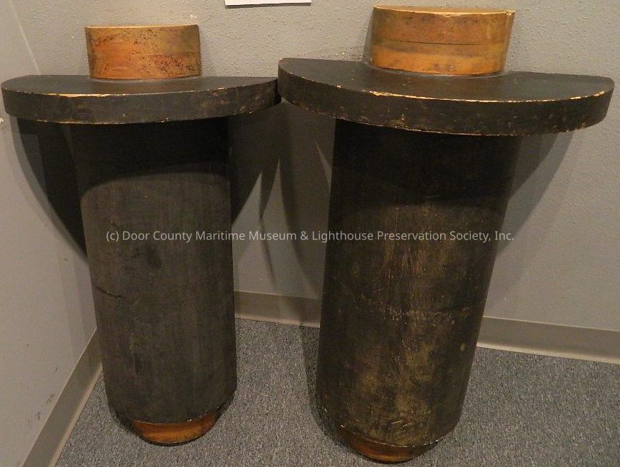 Casting pattern for stern bearing from WWI tugs; wood painted black; section on top and bottom and inside, varnished; printed inside "Sturgeon Bay Shipbuilding & D.D. 236-402-14-SK-24": two sections which fit together to make "cast."