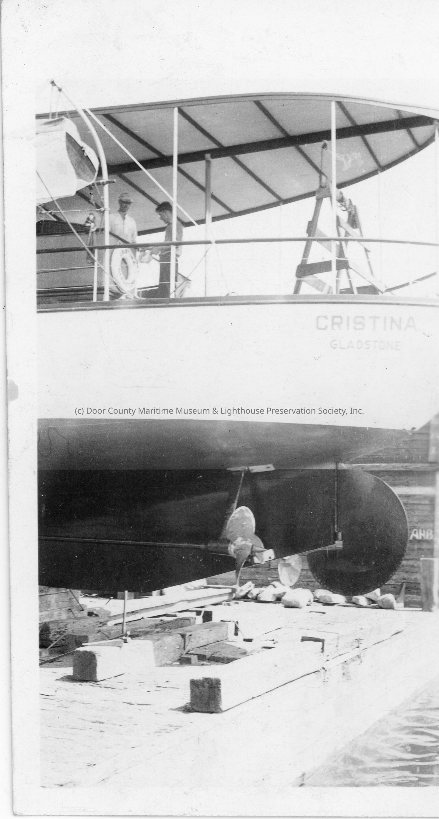 Stern of Cristina in drydock at SBSB&DD Co.