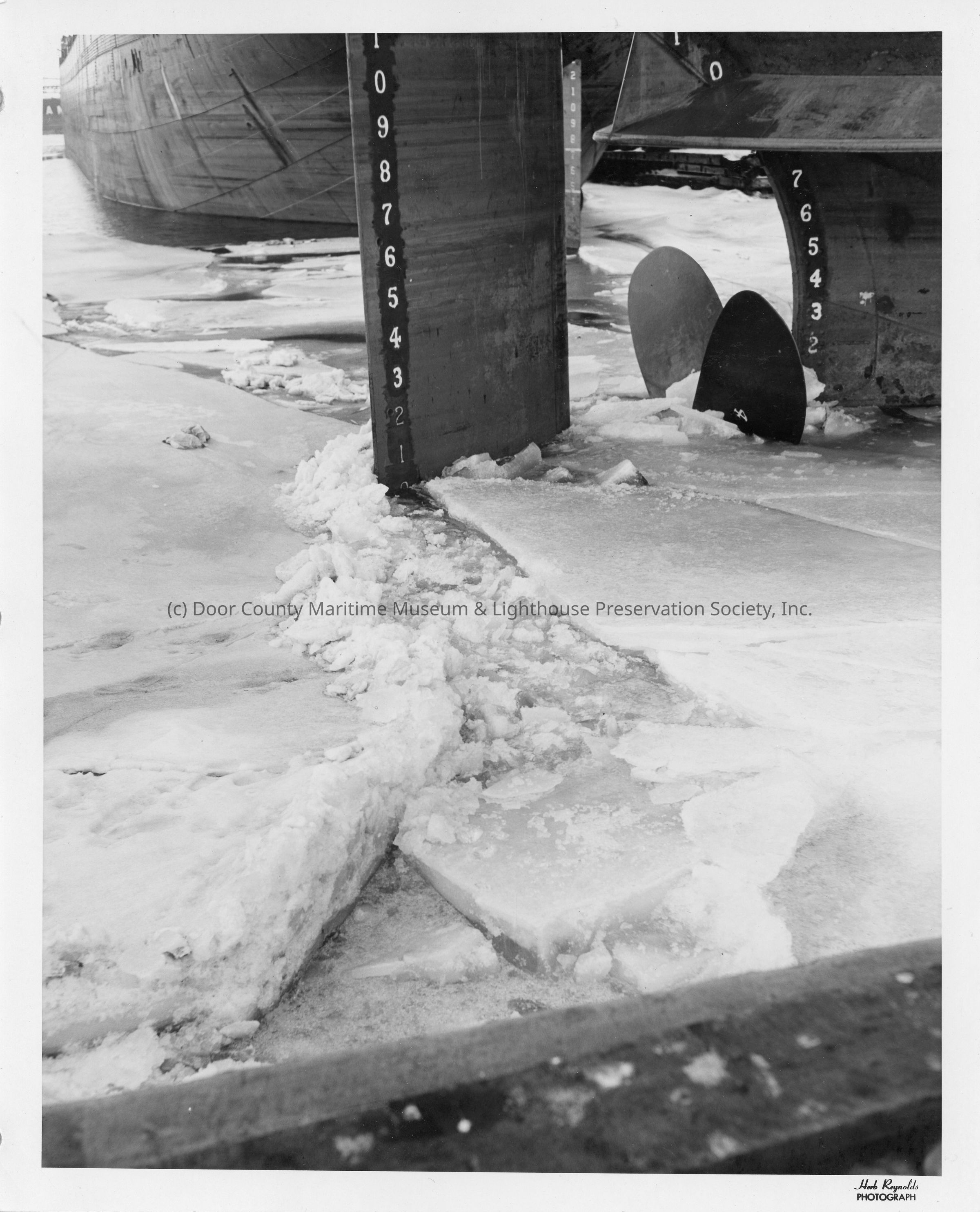 Stern of vessel in frozen water at Christy Corp January 15, 1958