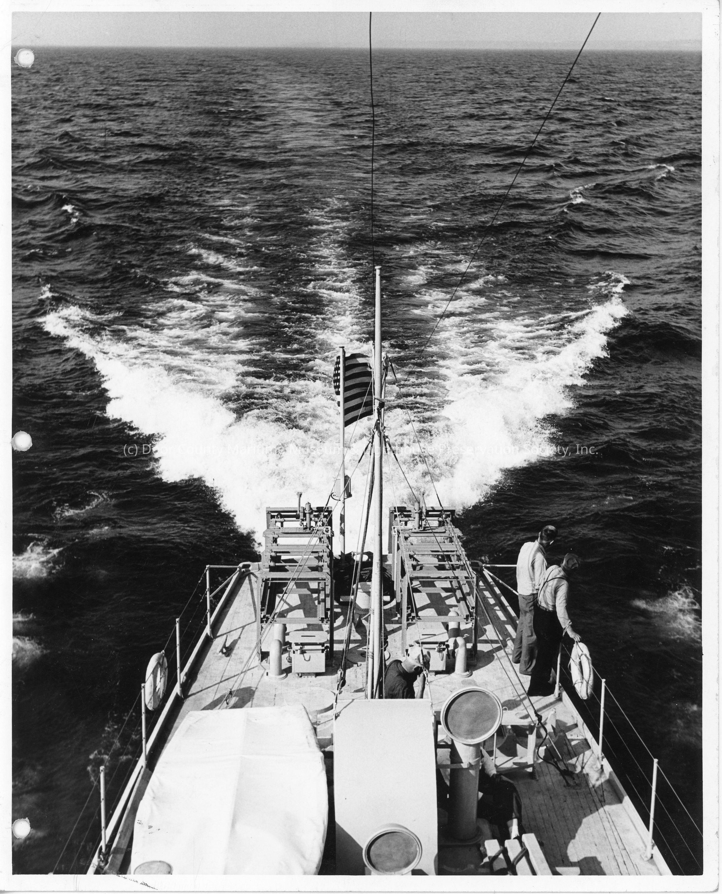 Stern view of SC-642 underway during sea trial July 18, 1942