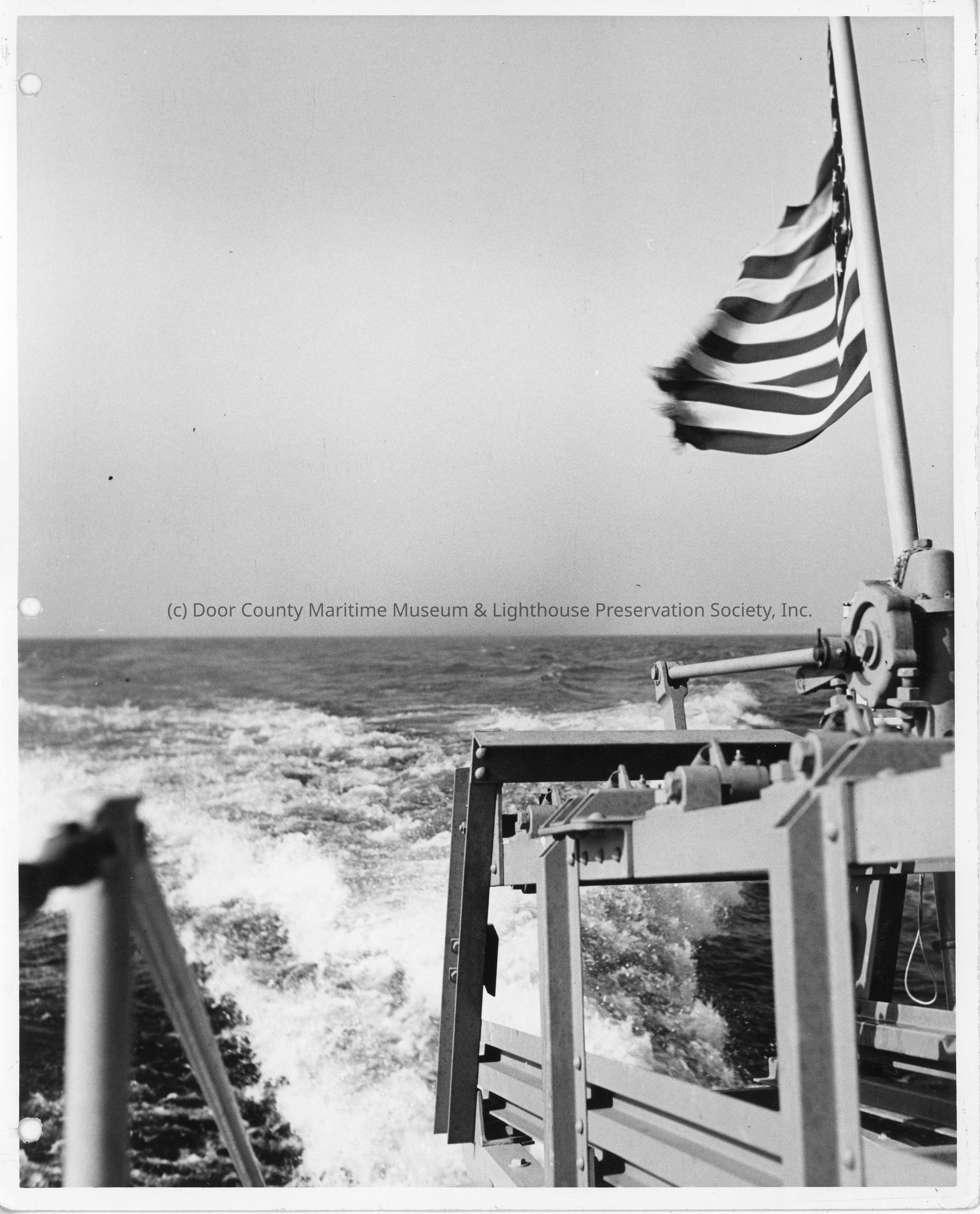 Stern view of SC-642 underway during sea trial July 18, 1942